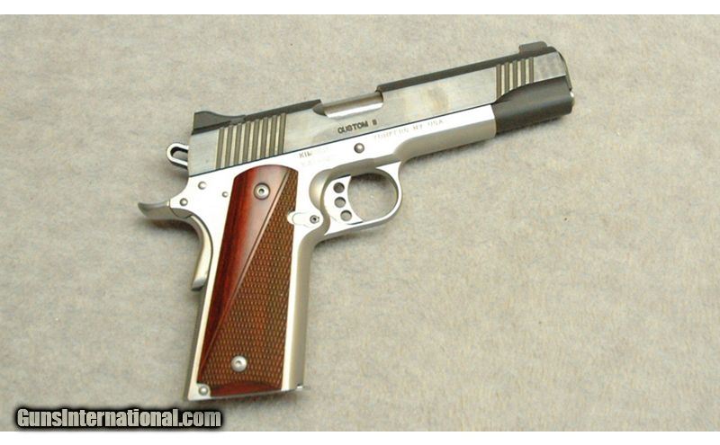 Description: Kimber Custom II Pistol, .45 Auto. Excellent condition with one mag and hard case. Two tone 1911 style pistol with extended safety lever and grip safety. Shows only few signs of use. .45 Auto SOLD Chambers: Semi auto Metal Condition: Excellent Wood Condition: Grips are excellent Bore Condition: Bright Barrels: 5 Triggers: Single action Butt Pad: Wood grips Sights: 3 White dot iron sights Item Location: La Vista, NE |