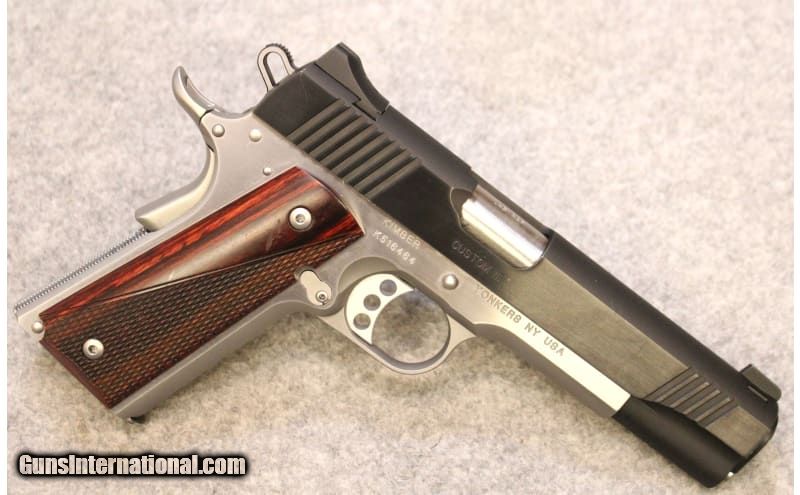 Description: This Kimber Custom II chambered in .45 Auto features, black finish, stainless steel frame, smooth/checkered Rosewood grips, checkered mainspring housing, front and rear slide serrations, thumb safety, and palm safety. .45 Auto SOLD Metal Condition: Great Wood Condition: Good Bore Condition: Bright Barrels: 5 Inches Weight: 2.2 lbs. Item Location: Hoffman Estates, IL |
