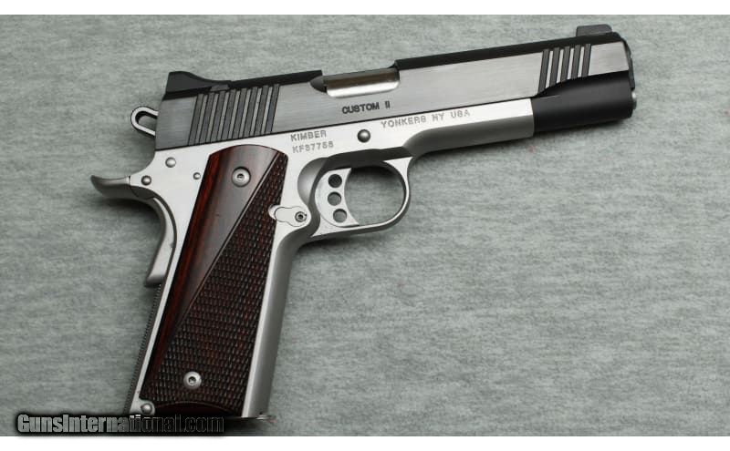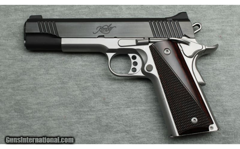 Description: Excellent condition, small wear and handling marks, comes with three mags and box. 9mm Semi auto 1911 style pistol. 5" Barrel, two tone finish, factory sights, aluminum single action trigger, lightweight hammer, extended safety lever and grip safety, checkered mainspring housing and Kimber factory wood grips 9mm Luger SOLD Chambers: Semi auto Metal Condition: Excellent Bore Condition: Bright Barrels: 5 Triggers: Single action Butt Pad: Wood grips Sights: "Square notch rear, black front sights Item Location: La Vista, NE |