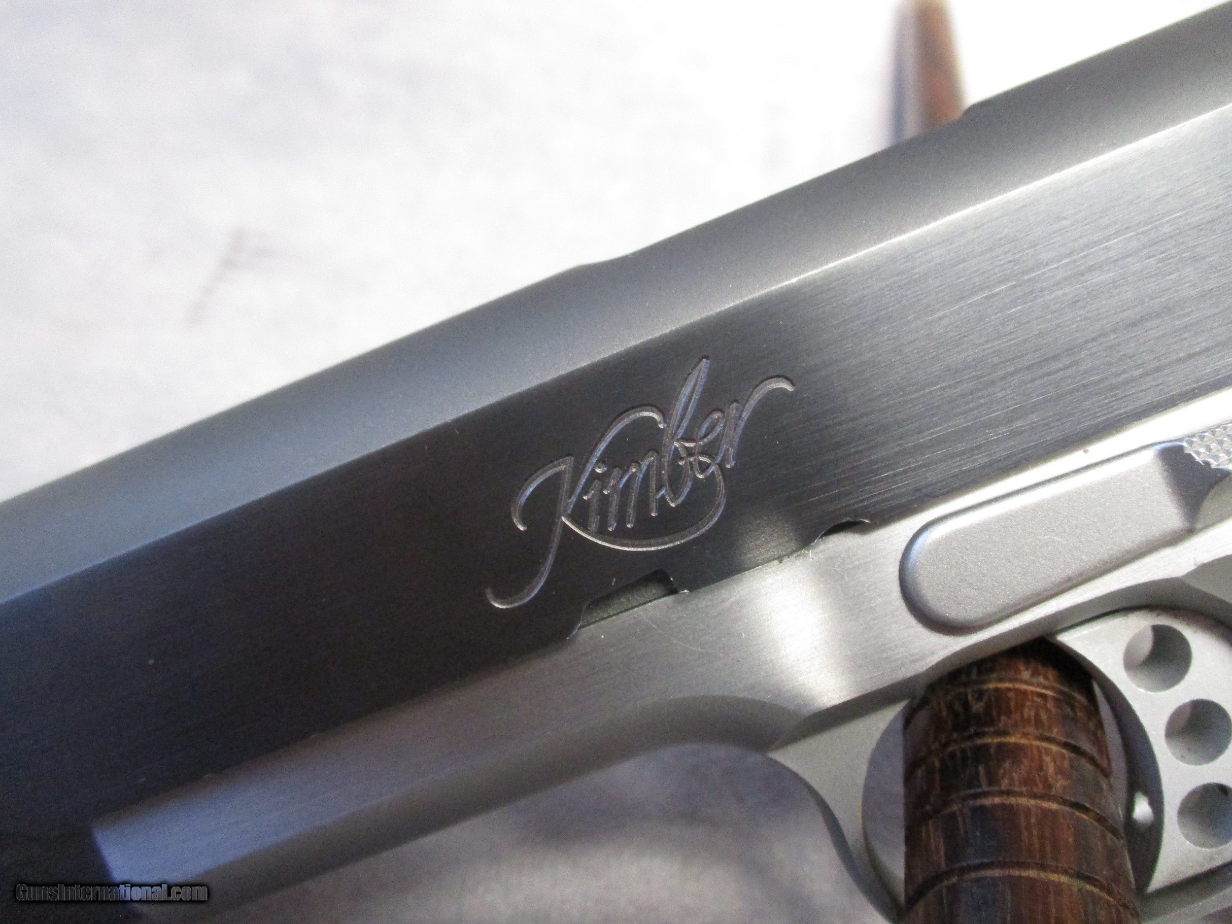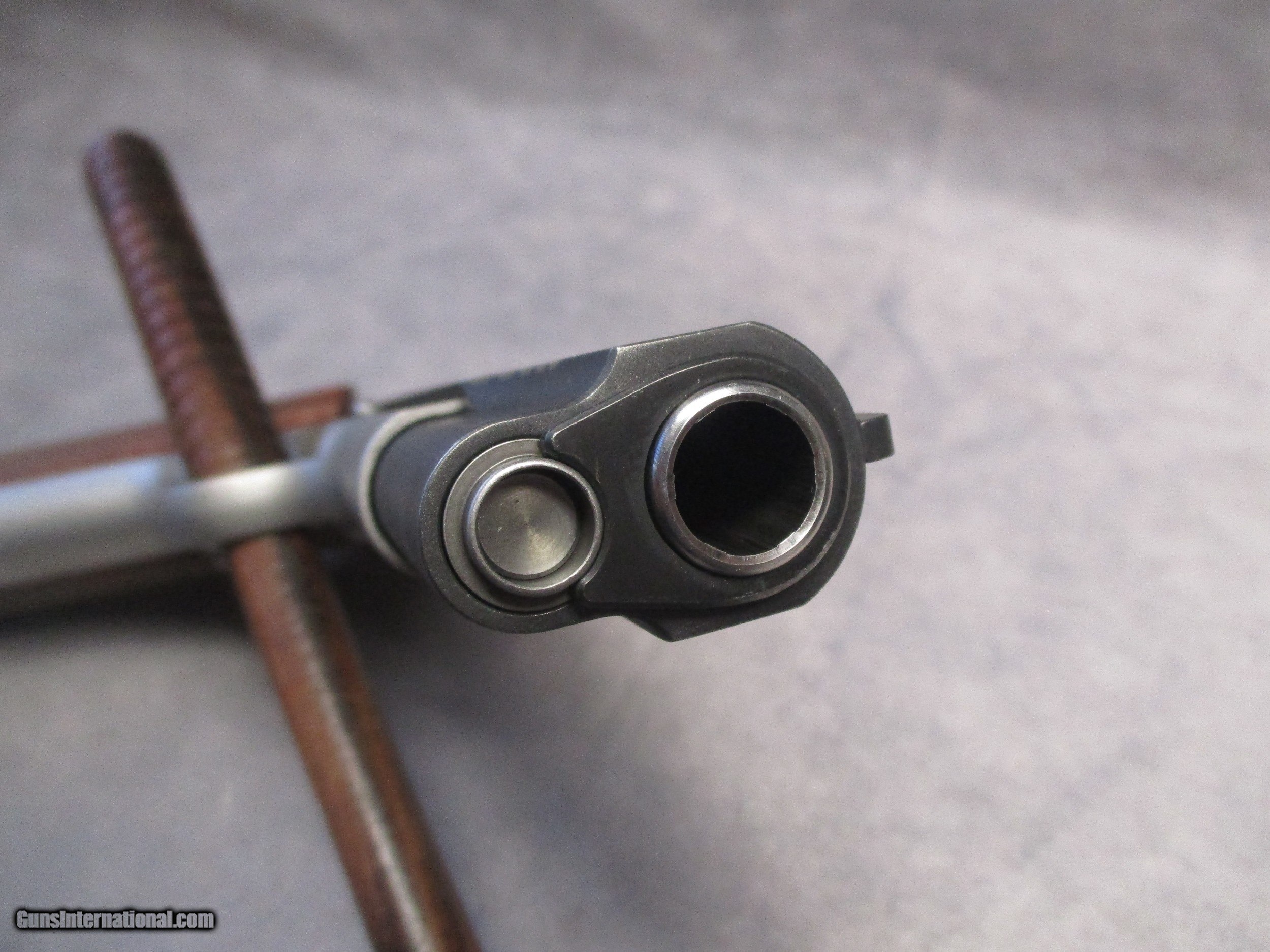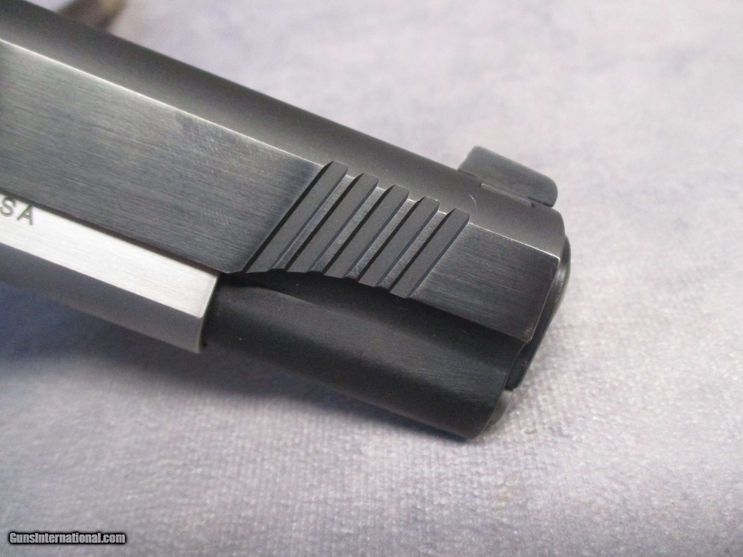 Description: The Kimber Custom II Two-Tone is one of their finest all-round pistols available. It features a brushed-polished carbon steel slide and a stainless steel frame with rosewood grips. The slide has front and rear serrations. It comes with one 8-round KimPro Tac-Mag, one 8-round standard Kimber magazine, and one 7-round Kimber magazine. The latter is a bit unusual as most modern 1911 magazines, like the first two mentioned, will hold 8 rounds instead of 7. The original magazines used in the early 1911 pistols held only 7 rounds more due to the quality of spring steel back in the early 20th century. Today’s spring steel allows for an additional round without having to make the magazine any longer than the originals. The synthetic extension attached to the Tac-Mag is for allowing the user to remove the magazine in the unlikely event of the magazine not dropping for some reason. The original sights have been replaced by a set of low-profile night sights. The pistol is in excellent condition though it has the light scratch mark on the frame below the slide lock. This occurs when the pistol is reassembled incorrectly. The finish shows a little wear near the muzzle but is otherwise the same as when it left the factory. The pistol is still mechanically tight and the bore exhibits no rust or pitting. The Custom II comes with its original box, the three magazines, the disassembly tool, the original pair of sight, and its manual. SOLD Handgun Caliber: .45 ACP (.45 Auto) Manufacturer: Kimber Mfg. Model: Custom II Two-Tone Serial Number: K547454 Bore: Rifled, LH twist, 1 in 16” Condition: Excellent Barrel Type: Round, tilting Action: Semi-Auto, Short recoil, Locked Breech Triggers: Aluminum 3-hole standard, factory setting 4.0 – 5.0 lbs. Stock: Smooth/checkered Rosewood Finish: Slide: Brushed polished, black; Frame: Brush polished stainless steel Weight: 38 oz. with empty mag Sights: Fixed low-profile night sights, sight radius 6.8 inches (173 mm) Extras: 2 spare mags for a total of 3 Case: Kimber box |