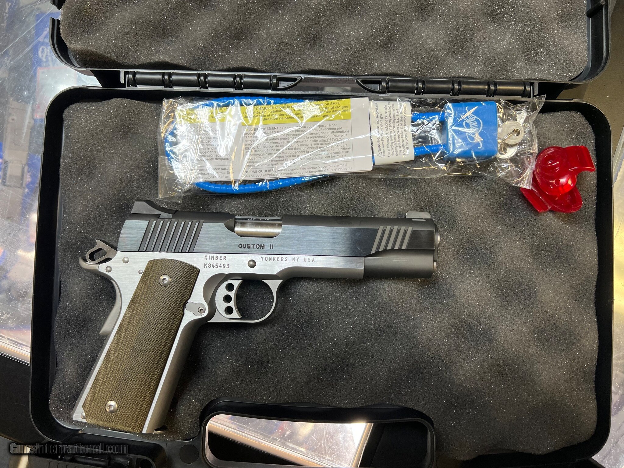 Description: Guns Listing ID: 684740 Gun is used in the box in excellent condition but has aftermarket grips. SOLD Manufacturer: KIMBER Model: CUSTOM II TWO-TONE Caliber Info: .45 ACP Condition: Used - Non-Certified Barrels: 5 BARREL |