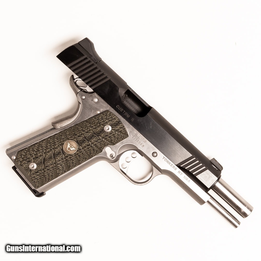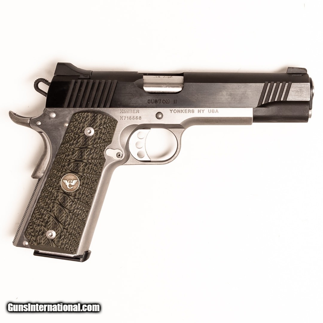 Description: Guns Listing ID: 571693 Setting the standard against which all other 1911 models are measured, the Custom II offers no-nonsense features that promote intuitive operation and absolute dependability. The Kimber Custom II is a modern 1911 designed for tactical use. This handgun is perfect for self-defense and can take a beating while still performing flawlessly. This handgun features Wilson Combat grips, one 7-round magazine, and the orignal case with the manual. SOLD Manufacturer: KIMBER Model: CUSTOM II Caliber Info: .45 ACP Condition: Used - Certified Barrels: 5 BARREL Finish: TWO-TONE |