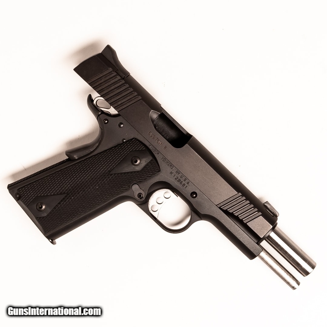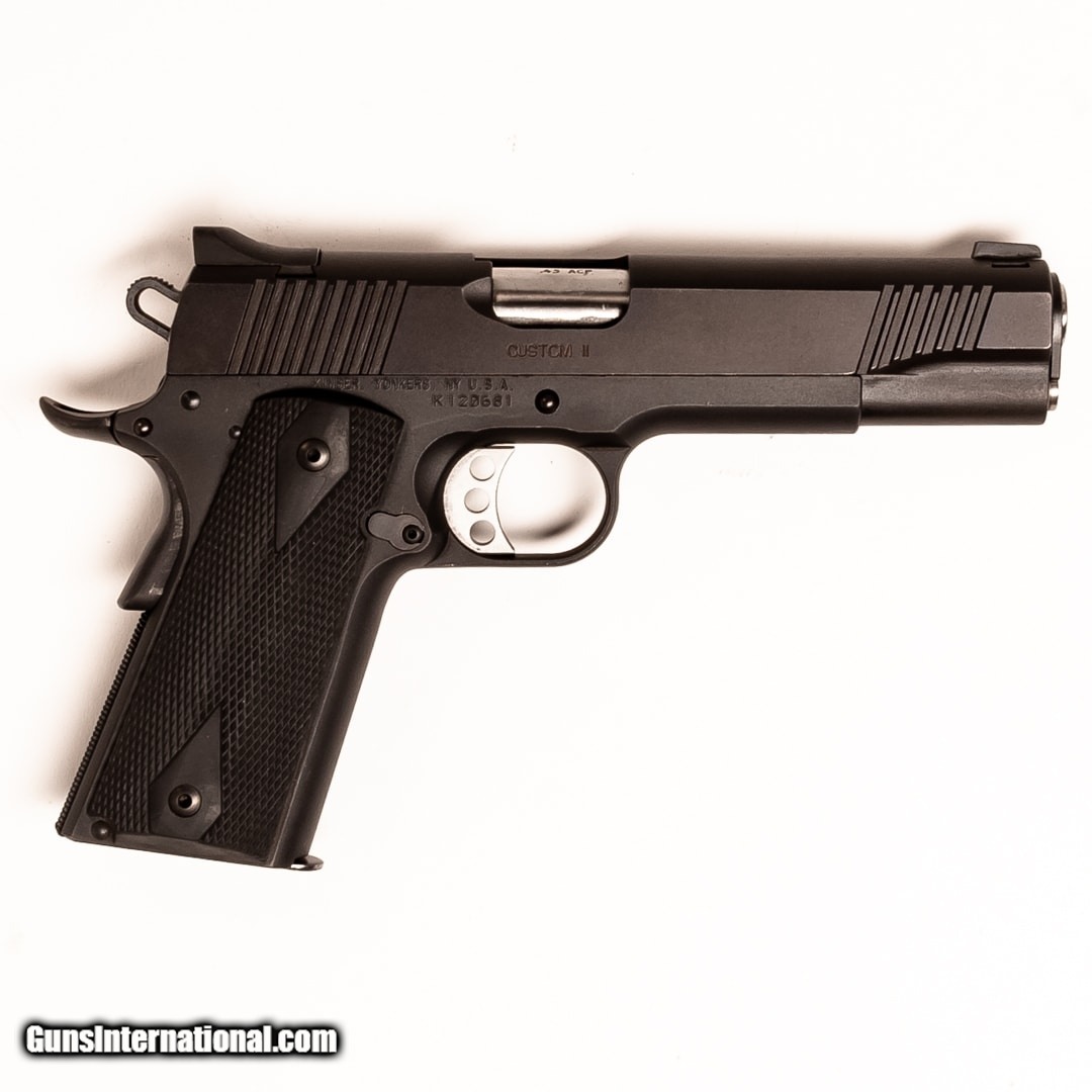 Description: Guns Listing ID: 616712 The Kimber Custom II is a modern 1911 designed for tactical use. It is also perfect for self-defense and can take a beating while still performing flawlessly. This Custom II has blacked-out sights and includes the original case, manual, one 7-round magazine, and a bushing tool. SOLD Manufacturer: KIMBER Model: custom II Caliber Info: .45 ACP Condition: Used - Certified Barrels: 4.5 barrel Finish: BLACK |