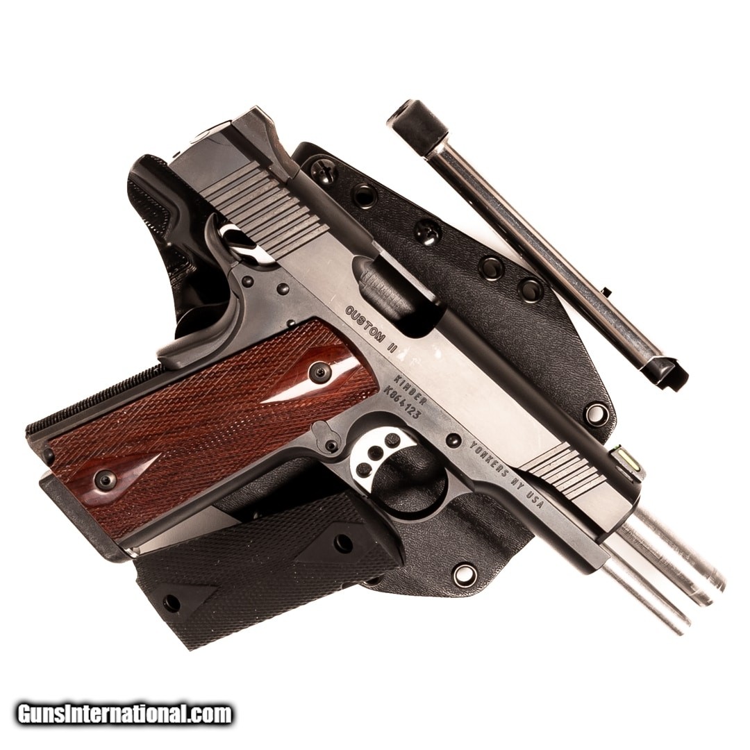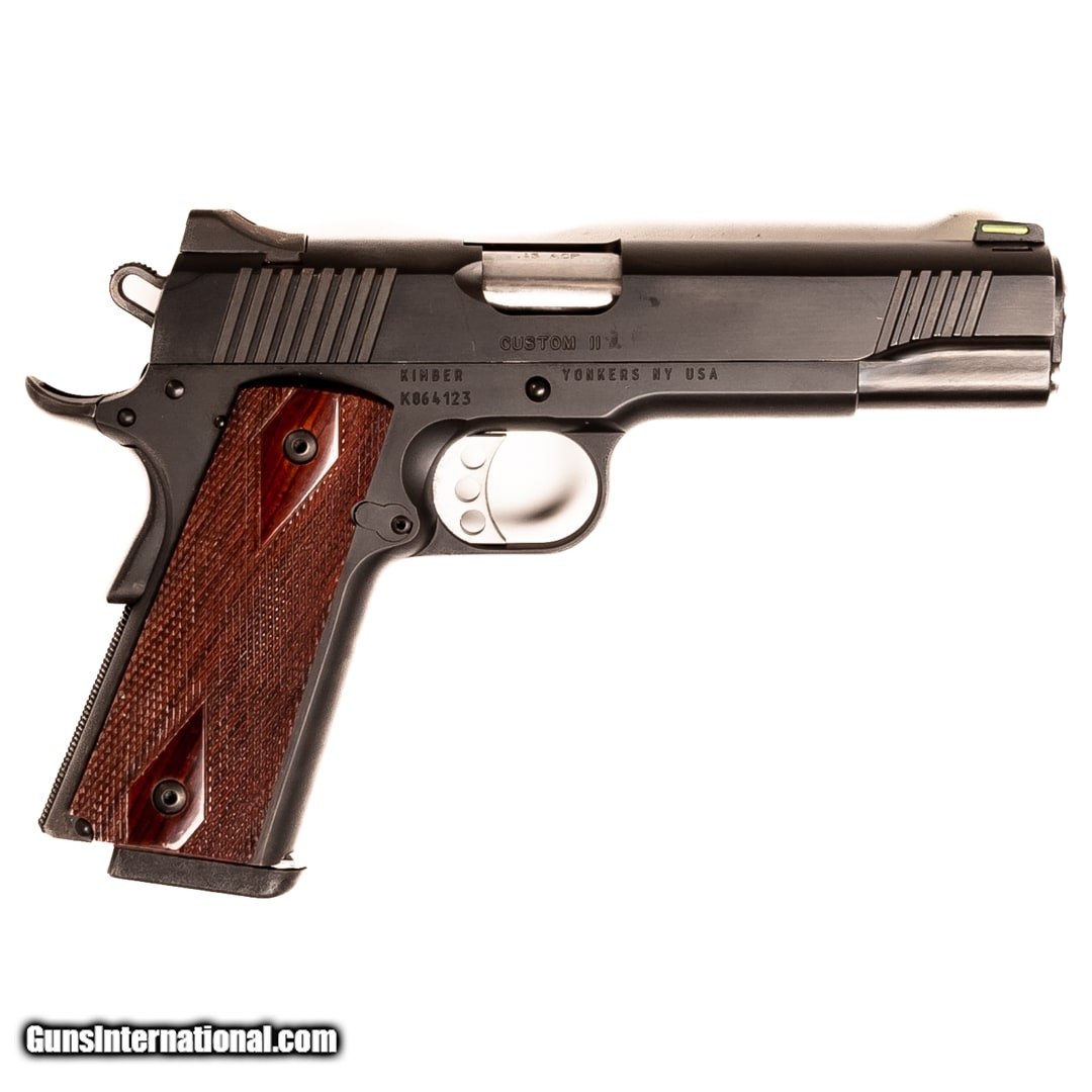 Description: Guns Listing ID: 679723 Setting the standard against which all other 1911 models are measured, the Custom II offers no-nonsense features that promote intuitive operation and absolute dependability. The Kimber Custom II is a modern 1911 designed for tactical use. This handgun is perfect for self-defense and can take a beating while still performing flawlessly. 2-8 round magazines, the original case, manual, original grips, and a Kimber IWB holster are included. Get the best bang for your buck when you get a Certified Used Firearm . When you see the Certified Used stamp on any of our firearms, you can be confident that you’re getting exactly what you want – a gun only in very good to excellent condition and held to the highest quality standard. All Certified Used Guns come with a ‘no questions asked’ return policy . PLUS, ALL CERTIFIED USED GUNS SHIP FREE! SOLD Manufacturer: KIMBER Model: CUSTOM II Caliber Info: .45 ACP Condition: Used - Certified Barrels: 5 barrel Finish: BLACK |