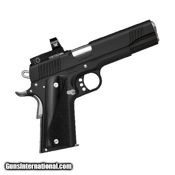 Description: The CUSTOM LW Nightstar is a special offering 1911, with 6MOA Vortex Venom red dot optic, weight reducing aluminum frame, Contrasting stainless small parts and sharp looking gray laminate grips with checkered gripping area for positive hold round out this unique package. Match grade stainless barrel with 9 rd magazine (9mm).