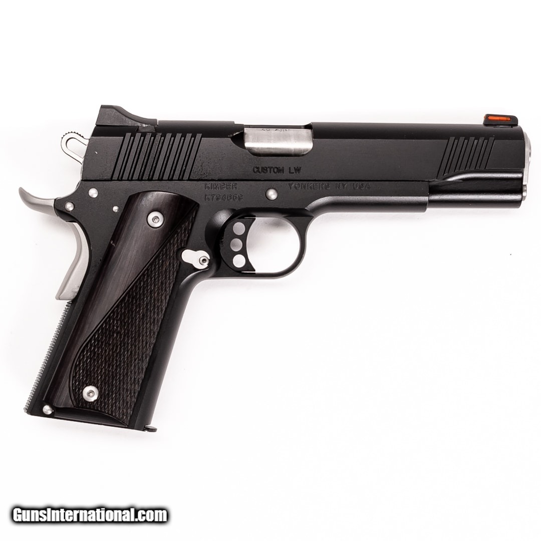 Description: Guns Listing ID: 328368 The Kimber Custom LW is a match-grade 1911 with a full-length 5" barrel. This model is chambered in the classic 45 ACP cartridge and comes with one 8-round magazine. This pistol is in excellent condition! SOLD Manufacturer: KIMBER Model: CUSTOM LW Caliber Info: .45 ACP Condition: Used - Certified Barrels: 5 BARREL Finish: BLACK |