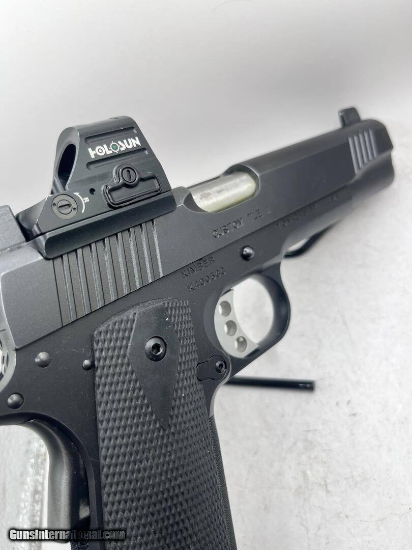 Description: Guns Listing ID: 545941 Comes with one 10 shot magazine, Holosun HE507C-GR X2 red dot optic, tall night sights, no box \"VR\ SOLD Manufacturer: KIMBER Model: Custom TLE II Caliber Info: .45 ACP Condition: Used - Non-Certified Barrels: 5 BARREL Action: SEMI AUTOMATIC Finish: black |