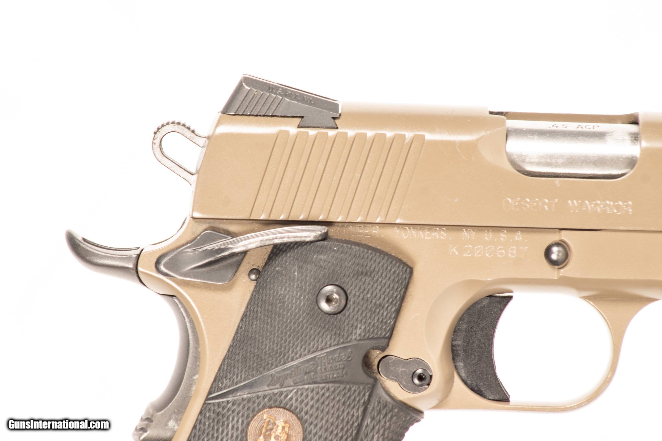 Description: Kimber Desert Warrior chambered in 45 ACP with a 5 inch barrel, bright & shiny bore, case, and 22 LR conversion kit. The NRA grading condition for this firearm is Excellent. Dury's Lifetime Warranty: All firearms purchased from Dury’s Gun Shop, NEW or USED, are covered by a lifetime warranty. We will repair or replace, at our discretion, any firearm purchased from Dury’s Gun Shop, Inc. for as long as it is owned by the purchaser. This warranty is not transferable. WE BUY GUNS! NO COLLECTION TOO BIG OR SMALL FOR OUR GUNS INTERNATIONAL CUSTOMERS ALL OF OUR FIREARMS CAN BE PURCHASED DIRECTLY FROM OUR DURY'S GUNS ! SOLD Manufacturer: Kimber Model: Desert Warrior Caliber Info: 45 ACP Barrels: 5inches |