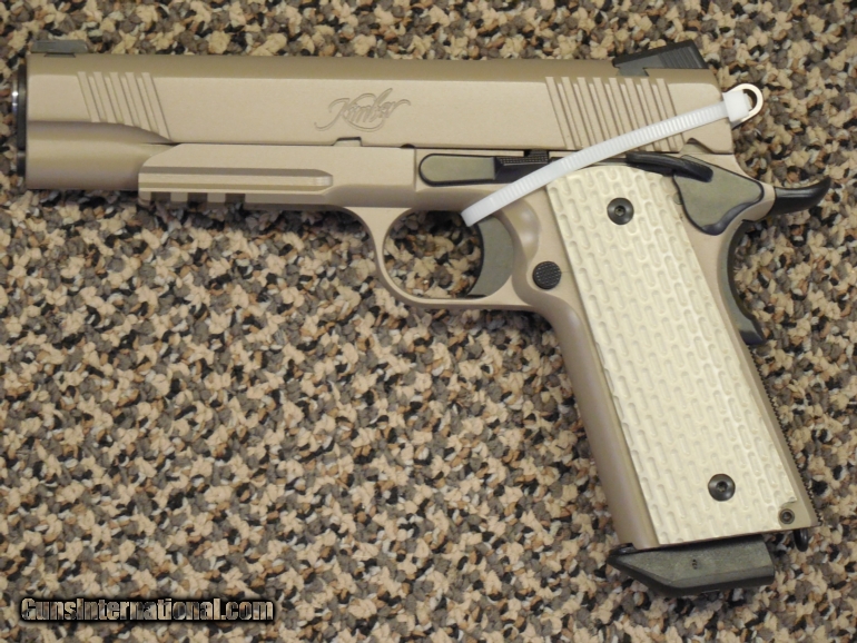 Description: Here's a new KIMBER DESERT WARRIOR .45 ACP PISTOL. It's got a rail system, finished in FDE (Flat Dark Earth), has night sights, and G-10 grips. It's being offered at a REDUED PRICE for the Holiday season, and is being offered for ONLY $1099.95 plus $25 for shipping, handling, and insurance for CASH/CERTIFIED FUNDS/MO's. Use a credit card and add $35 to the toTOTAL. FOR THOSE SKEPTICS who question discount pricing, the MSRP for this gun is $1476..... SOLD |