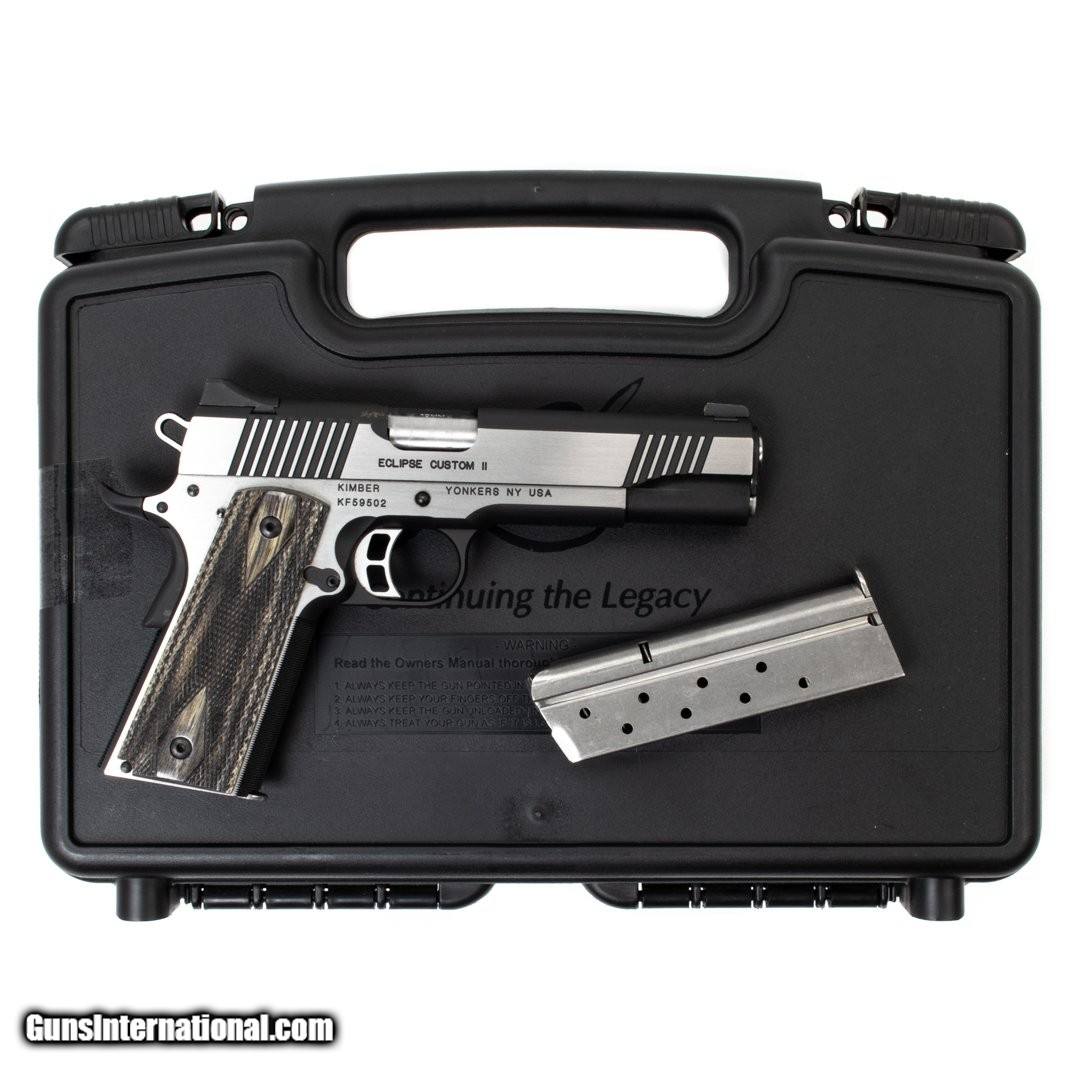 Description: Guns Listing ID: 554631 This Kimber Eclipse Custom II features night sights and a thumb safety. Purchase includes the original case, manual, and two 9-round magazines. Get the best bang for your buck when you get a Certified Used Firearm . When you see the Certified Used stamp on any of our firearms, you can be confident that you‚re getting exactly what you want – a gun only in very good to excellent condition and held to the highest quality standard. All Certified Used Guns come with a ‚no questions asked‚ return policy . SOLD Manufacturer: KIMBER Model: ECLIPSE CUSTOM II Caliber Info: 10MM Condition: Used - Certified Barrels: 5.00" BARREL Action: SEMI AUTOMATIC Finish: black & stainless Weight: 2.4 |