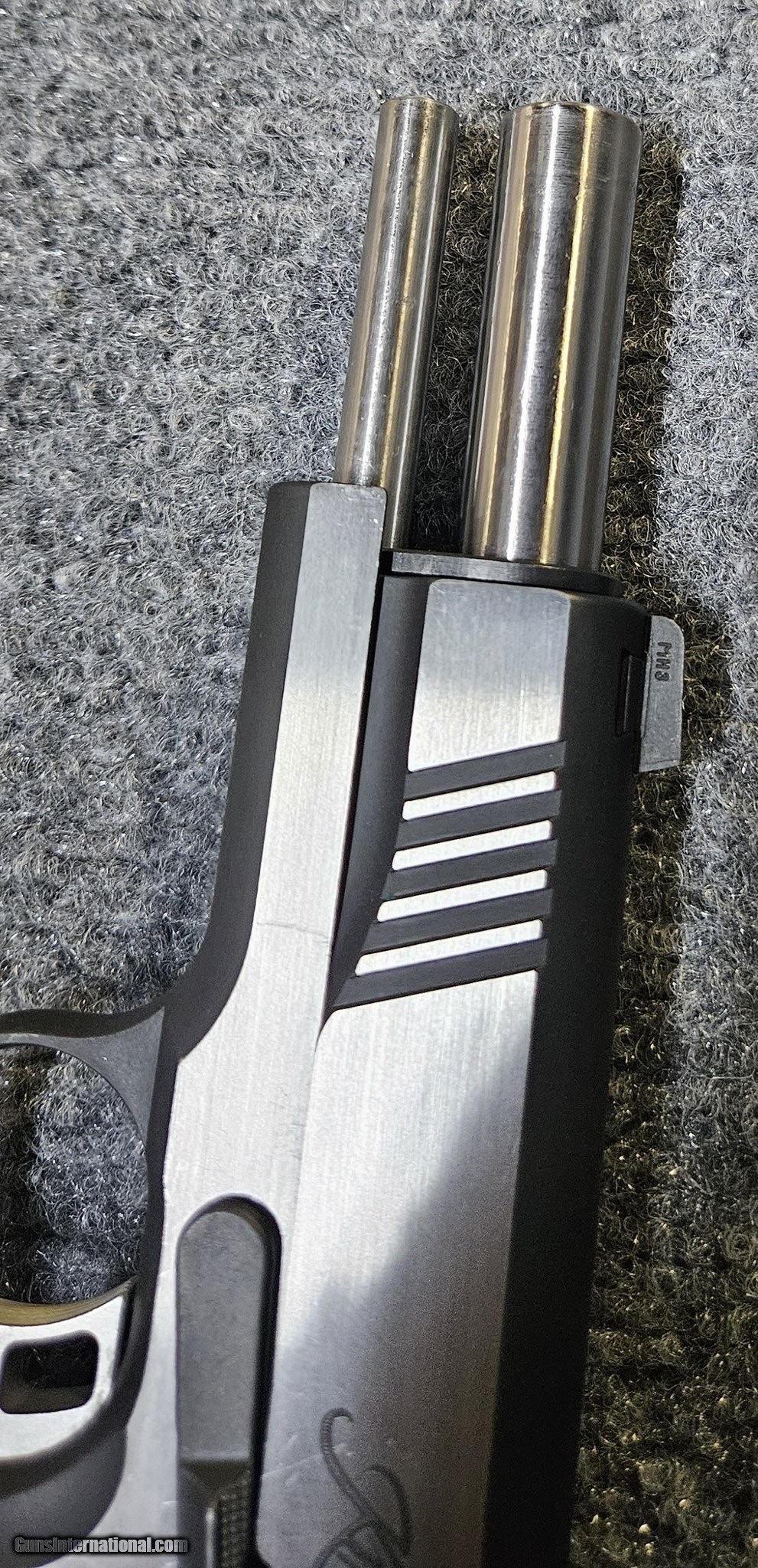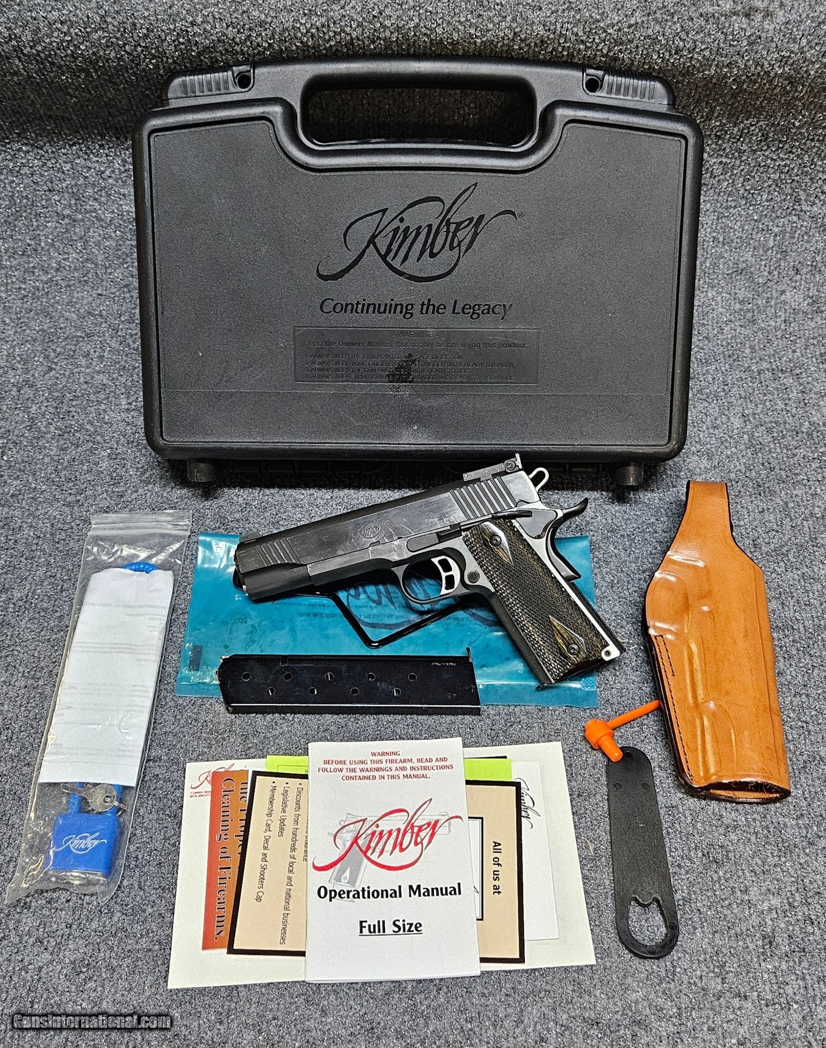 Description: Guns Listing ID: 553570 Used – Never Fired Kimber Eclipse Target II .45 ACP – Stainless/Black – Target Model Item Description: Kimber Eclipse Target II chambered in .45 ACP, used but never fired condition. This pistol has been stored carefully since purchase, showing slight very light faint blem/scratches on slide. It has never been fired outside of the factory. The Eclipse Target II is part of Kimber’s high-end 1911 lineup, known for precision manufacturing, premium materials, and match-grade performance. Its striking two-tone stainless steel and black finish, along with its fully adjustable target sights, make it as much a work of art as a competitive shooter’s tool. Features & Specs: Manufacturer: Kimber Model: Eclipse Target II Caliber: .45 ACP Barrel Length: 5\" Finish: Stainless Steel Frame & Slide with Brush-Polished Flats / Black Accents Sights: Fully Adjustable Target Sights Grips: Laminated Double-Diamond Checkered Wood Magazine Capacity: 8+1 Action: Single Action, Semi-Automatic (1911) Condition: Used – Never Fired (Factory Only) History of the Kimber Eclipse Target II: The Kimber Eclipse series was first introduced in the early 2000s as part of Kimber’s premium 1911 line, designed for both precision target shooting and refined aesthetics. Built on a full-size Government frame, the Eclipse Target II features a match-grade barrel, match-grade trigger, and hand-fitted slide-to-frame fit for exceptional accuracy. The Eclipse’s unique brushed stainless finish with black oxide accents was a departure from the more traditional all-blued or all-stainless 1911s, quickly earning it recognition among collectors and competition shooters alike. The Target II variant includes fully adjustable sights for precision accuracy, making it popular for bullseye and range competition. Kimber’s 1911s are known for their tight tolerances and custom-shop-level fit right out of the box, making the Eclipse Target II one of the most sought-after production 1911s in the market. Included with gun: Kimber Eclipse Target II pistol (.45 ACP) Original Kimber hard case Owner’s manual One Kimber factory magazine Condition Note: Though listed as “used" for transfer purposes, this firearm has never been fired outside the factory. It has been handled minimally and stored properly in a climate-controlled safe. SOLD Manufacturer: KIMBER Model: Eclipse Target II Caliber Info: .45 ACP Condition: Used - Non-Certified Barrels: 5 BARREL Action: SEMI AUTOMATIC Finish: black and stainless |