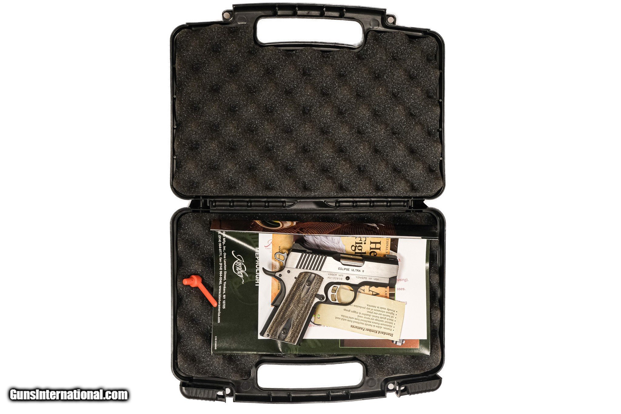 Description: Kimber - Eclipse Ultra II, Stainless Steel/Black Finish w/Polished Flats, .45 ACP. 3" Barrel. Diamond checkered wood grips, stainless steel in a black finish with polished flats creating a beautiful two tone finish, factory carry case, factory paperwork, and two magazines, looks brand new, available for immediate delivery. S & H - $50.00. Inv: 83274 $1,199.00 SOLD |