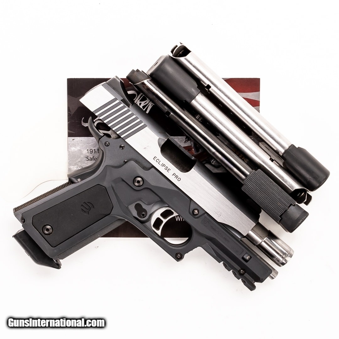 Description: Guns Listing ID: 355145 Delivering Kimber quality, this Eclipse Pro is chambered in 45 ACP and ready for whatever's thrown its way. It is crafted with a stainless steel frame and slide, carbon steel barrel, and a premium aluminum match-grade trigger. This Eclipse Pro is equipped with night sights and a Recover CC3P rail system. It is in very good condition! Purchase includes the owner's manual, one 7-round magazine, and three 10-round magazines. SOLD Manufacturer: KIMBER Model: ECPLIPSE PRO Caliber Info: .45 ACP Condition: Used - Certified Barrels: 4 BARREL Finish: TWO-TONE |