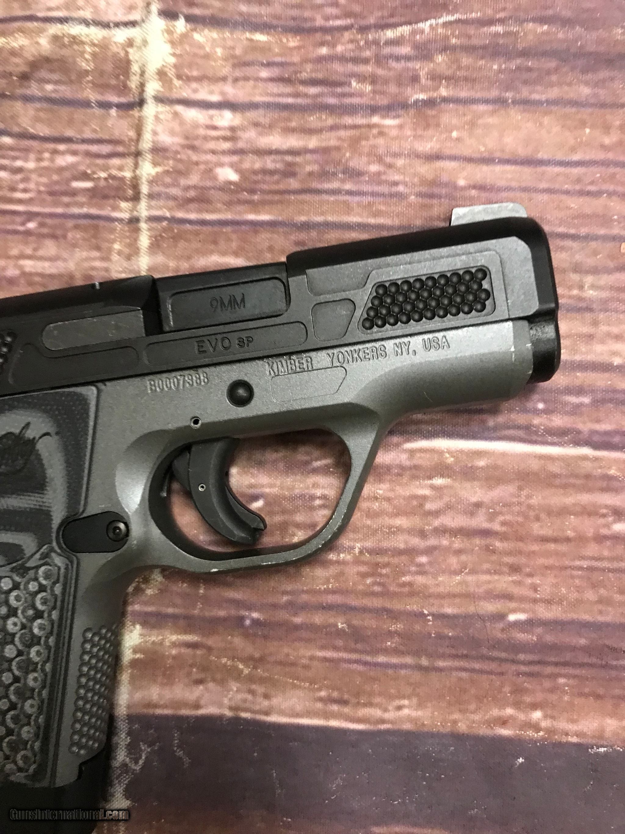 Description: Guns Listing ID: 812012 According to our rating scale I would Rate this gun \"GOOD\". I have taken multiple pictures to show the condition of it. We want you to get the best impression of it. With the hopes when you get it, that it is better than what you thought. 100% working order. Some dings and scratches Comes with gun and one mag. The bore I would rate 7.5 out of 10. If I had to rate the firearm in condition I would say 7 out of 10.(Please see my pictures for a better detailed idea), Please see all Photos for a very detailed Description of condition. We rate firearms using these condition standards, for modern firearms. NEW-A gun given a grade of \"new\" looks just as it did when it left the factory and has never been sold at a retail store. PERFECT-A “perfect” gun is literally as good as new, although it may have been sold in a retail store. EXCELLENT-An “excellent” rating means the gun appears to be in perfect condition but may have had minor use. VERY GOOD-A “very good” firearm is perfect mechanically but may have minor cosmetic blemishes. GOOD-A rating of “good” indicates that the gun is in proper working condition but may show signs of wear. FAIR-A “fair” firearm may or may not be in safe working order. It has not been test fired, only visually inspected. It may need repair or maintenance. UNRATED-Unrated condition means this firearm has not been test fired, it may function perfectly or it may be in need of repair. Cosmetically it may be in very good to fair condition. You will need to look at the pictures and ask questions SOLD Manufacturer: KIMBER Model: Evo SP Custom Shop w/ Night Sights Caliber Info: 9MM LUGER (9X19 PARA) Condition: Used - Non-Certified Barrels: 3.16 BARREL Finish: BLACK & GREY |