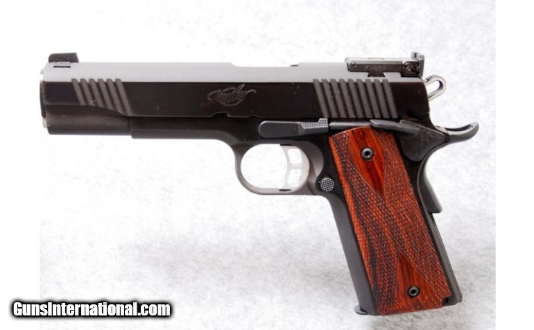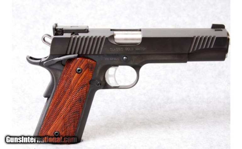Description: SOLD Caliber Info: .45 ACP. Metal Condition: Blued steel frame and slide, serrated loop hammer, left side slide release, left side safety, grip safety, beaver tail, and smooth front strap with a checkered back strap. Wood Condition: Excellent. Bore Condition: Excellent. Barrels: 5" stainless barrel. Triggers: Aluminum skeleton trigger with a serrated surface and adjustment. Stock: Checkered walnut. Sights: Blade front sight and adjustable rear. Extras: Comes with the Kimber hard case with accessories. Item Location: Kansas City, KS |