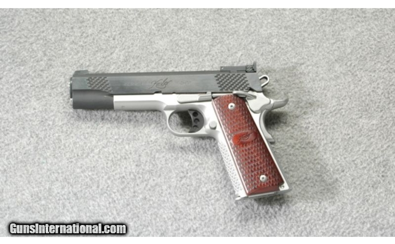 Description: This is a pre-owned Kimber Grand Raptor II in .45 ACP. Made entirely in the Kimber Custom Shop, the Grand Raptor II series of pistols is equaled in quality only by a handful of America's finest gunsmiths. The finest parts are combined with hand fitting and artistic flair to create a pistol as beautiful as it is functional and accurate. Features scaled serrations in the gripping areas, scaled front strap, and scaled pattern rosewood Kimber logo grip. It has a 5" barrel, adjustable night sights, and highly polished stainless steel flats. This pistol is in excellent condition, it does have a scratch on the bottom left side of the frame. SOLD Caliber Info: .45 ACP Metal Condition: Shows signs of light use. Wood Condition: Shows signs of light use. Bore Condition: Clean with bright lands. Barrels: 5 Triggers: Aluminium, match grade. Stock: Rosewood with a scale pattern and Kimber logo. Weight: 38 oz Sights: Adjustable Meprolight Tritium bar-dot night sight. Extras: Comes with factory case, bushing wrench, and 1 KimPro magazine. Item Location: Glendale, AZ |