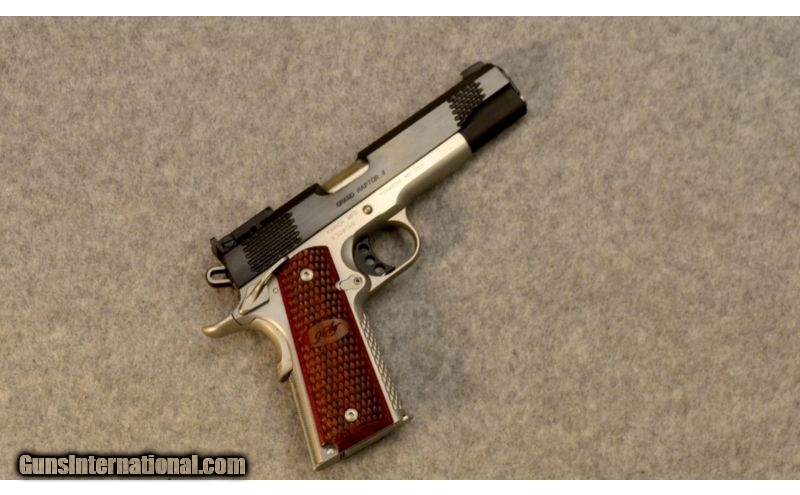 Description: This is a pre-owned Kimber Grand Raptor II. SOLD Caliber Info: .45 ACP Metal Condition: Excellent condition with a light reasembly scratch. Wood Condition: Excellent condition. Bore Condition: Clean with bright lands. Barrels: 5 inch, match grade. Triggers: Match grade, aluminum. Stock: Rosewood with a scale pattern and Kimber logo. Weight: 2 1/2 lbs. Sights: Meprolight adjustable bar rear with a Meprolight dot front. Extras: Comes with the factory case, manual, bushing wrench, and 1 Colt 7 round stainless magazine. Item Location: Glendale, AZ |