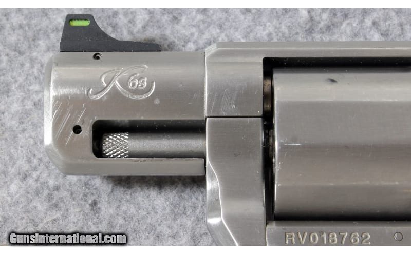 Description: The Kimber K6s Double-Action Revolver is capable of delivering sustained magnum fire on target when the time calls. The Kimber K6s is stoutly built from solid stainless steel, yet it's compact enough for concealed carry. The uniquely designed cylinder holds 6 rounds and is only slightly larger in diameter than the 5-shot cylinders found on most concealed carry revolvers. The frame features a brushed stainless finish; and the grips are made of black rubber. The K6s revolver uses an internal hammer; therefore, it fires in double-action mode only. For concealed carry or packing an emergency gun into bear country, the Kimber K6s Double-Action Revolver is concealable, corrosion resistant, ultra reliable, and big on firepower to firearm weight ratio.? .357 Magnum SOLD Metal Condition: "Good, with scratches Bore Condition: Excellent with signs of use Barrels: 4006314 Triggers: Double action only Weight: 23 oz. Sights: Adjustable rear sight with fiber optic front Item Location: Lehi, UT |