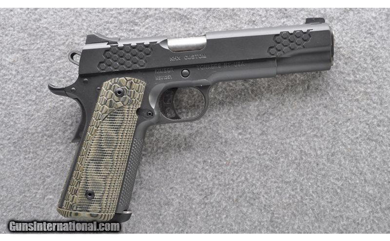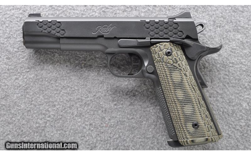 Description: The Kimber KHX features Hexagonal stair-stepped serrations for positive grip surfaces no matter the conditions. Finished in KimPro II gray on slide & frame and Hogue MagGrips that create a beveled magwell and the grip pattern extends to the mainspring housing. Stiplex front strap texture for enhanced positive grip. .45 ACP SOLD Chambers: .45 Automatic Colt Pistol in an eight round detachable KimPro Tac-Mag magazine Metal Condition: Appears in near new condition Wood Condition: G-10 Grips are like new Bore Condition: Sharp & bright Barrels: 5" stainless steel match grade with stainless match grade bushing Triggers: Match Grade Single Action Premium Aluminum Adjustable Weight: 40 Oz. Sights: Tritium night sights Item Location: Grand Junction, CO |