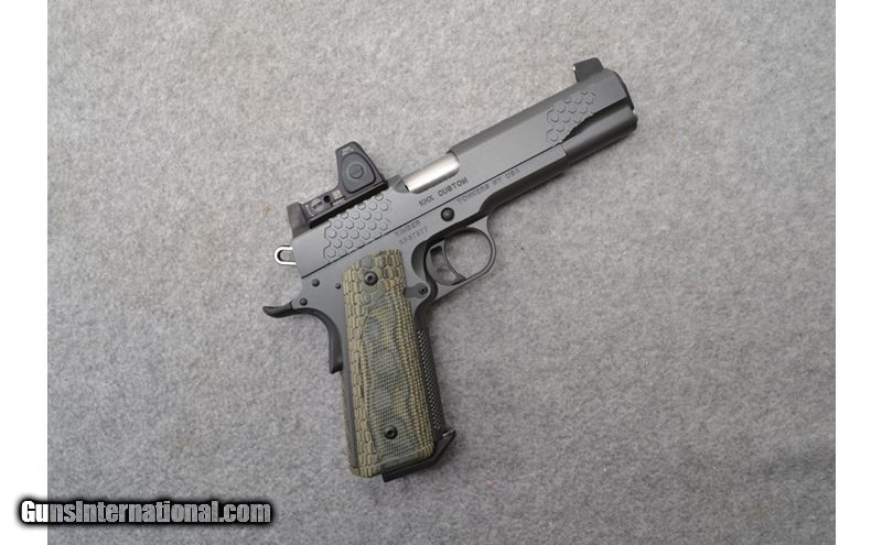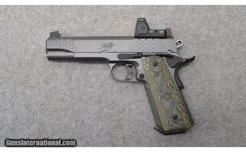Description: This Kimber Custom KHX comes with a 5" match grade stainless steel barrel and stainless steel match grade bushing. Bore appears bright with good rifling. Some minor fouling noted. The stainless steel frame and slide are in excellent condition with no noted scratches or defects. G10 scales adorn the grip. Equipped with stiplex front strap stippling for extra grip confidence. Finishing out the firearm is a Trijicon RMR red dot sight with 3-white dot co-witness sights. 9mm Luger SOLD Metal Condition: Stainless steel slide and frame in a gray finish. No scratches or other defects noted. Bore Condition: Bright bore with minor fouling noted. Rifling in excellent condition. Barrels: 5" stainless steel match grade barrel. Triggers: Premium aluminum trigger. Stock Dimensions: 9" overall length. Butt Pad: Hogue G-10 Magrip Weight: 2 lb 6 oz Sights: Trijicon RMR 3.25 MOA Red Dot Optic. White dot co-witness sights. Item Location: Mitchell, SD |