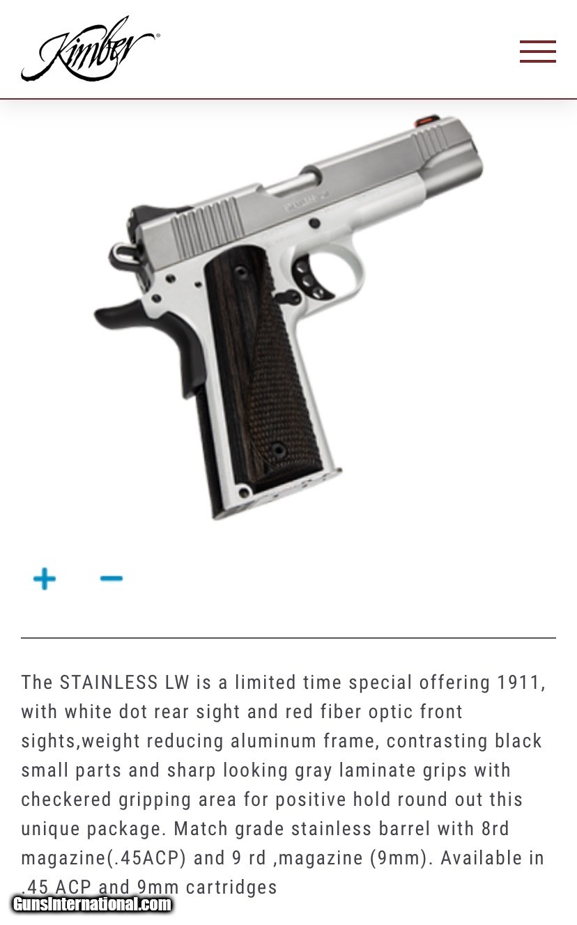 Description: Limited Run Kimber Arctic LW 1911 45 auto, 5" stainless steel barrel, LW frame , fiber optic sight. new in box, no credit card fees fast FedEx shipping $25 SOLD |