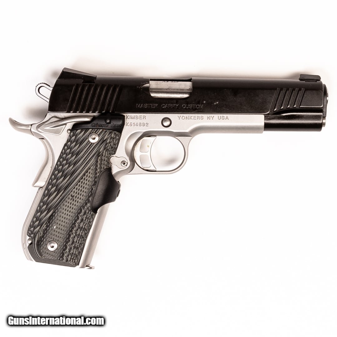 Description: Guns Listing ID: 502982 The Kimber Master Carry Custom is a premium-quality 1911 with several key features that are a must for tactical/duty applications. The Match grade barrel, forward slide serrations, aggressive textured backstrap, G10 grips, night sights with 90-degree cocking ledge, and all-metal construction make this an incredibly robust high-performance machine. This handgun features a bushing tool, one 7-round magazine, and the original case with the manual. SOLD Manufacturer: KIMBER Model: Master Carry Custom Caliber Info: .45 ACP Condition: Used - Certified Barrels: 5 BARREL Finish: STAINLESS AND BLACK |