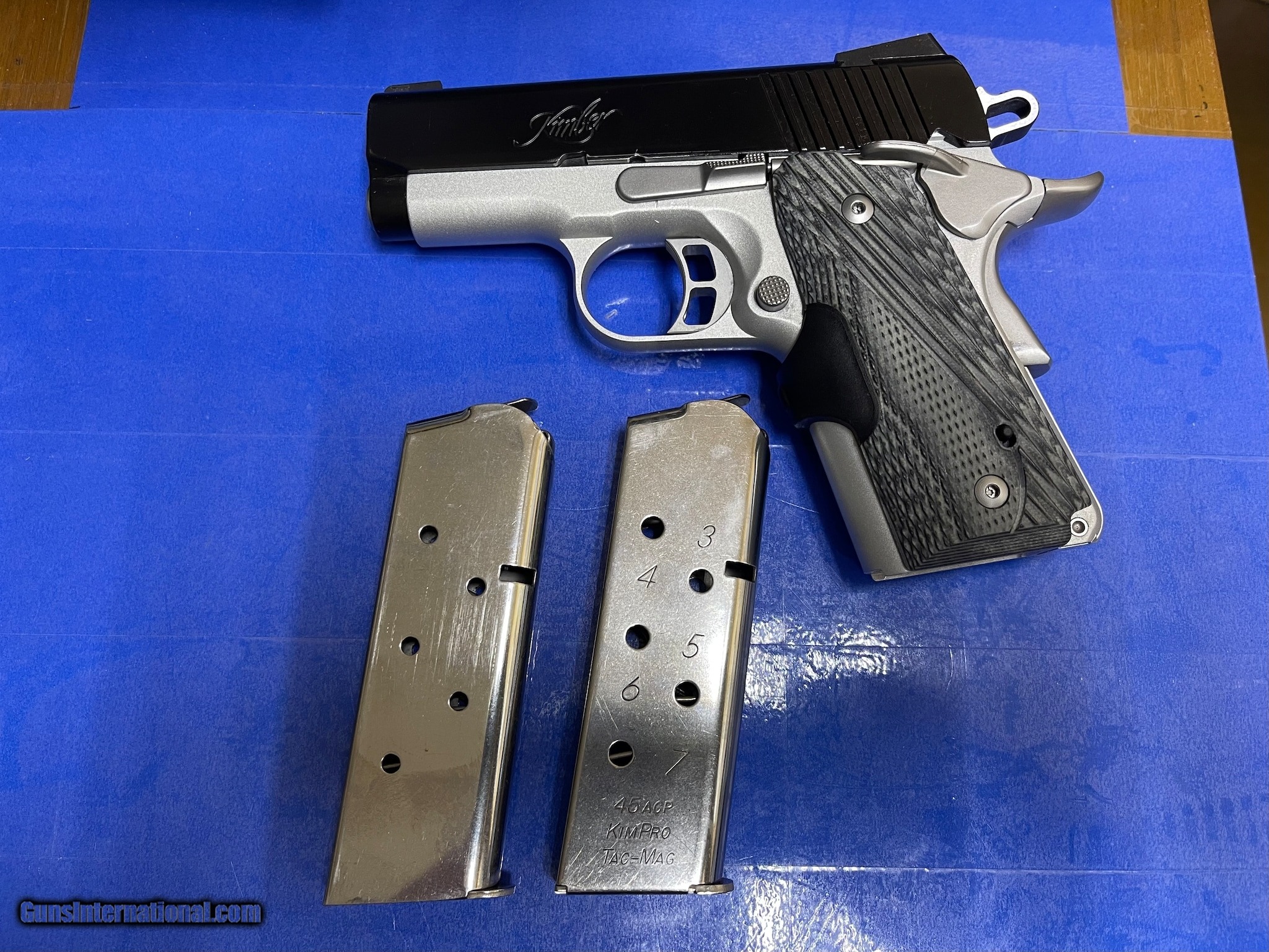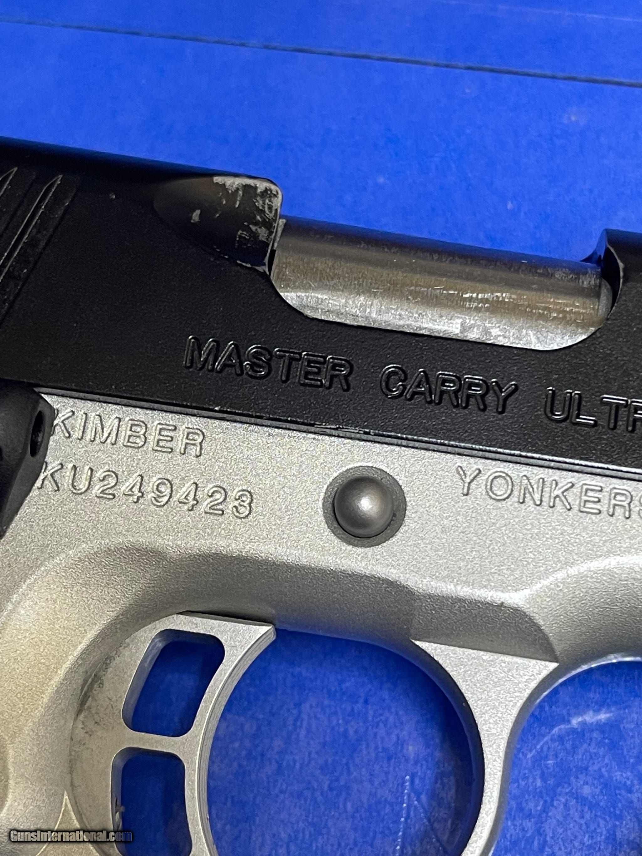 Description: Guns Listing ID: 517763 This firearms is in great condition, Kimber Master Carry Ultra Pistol w/ crimson laser red dot. Only bluing rubbed off is at where the ammo ejects. see pictures one magazine from Kimber 7rds, another magazine from kim pro tac-mag 7rds, Action: Semi-automatic / Single action Caliber: .45 ACP Barrel length: 3\" Capacity: 7+1 Safety: Thumb and grip safety Grips: Lasergrips Sights: Night sights Weight: 25 oz G-970399-1 SOLD Manufacturer: KIMBER Model: MASTER CARRY ULTRA W/ CRIMSON TRACE GRIP Caliber Info: 45 ACP Condition: Used - Non-Certified Barrels: 3" BARREL Finish: KIMPRO II TWO-TONE |