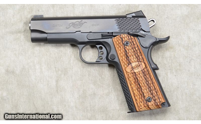 Description: This is one of the more attractive of all the 1911 Commanders having nice wood stocks, stainless steel barrel, and easy to see white dot sights. Appears to have been fired but could pass for new. .45 ACP SOLD Chambers: 8 Metal Condition: Excellent. Bore Condition: Excellent. Barrels: 4-inch Triggers: Factory single action trigger. Butt Pad: Feather pattern checkered hardwood. Weight: 35 oz Sights: Low profile post and notch with white dots. Item Location: Rogers |