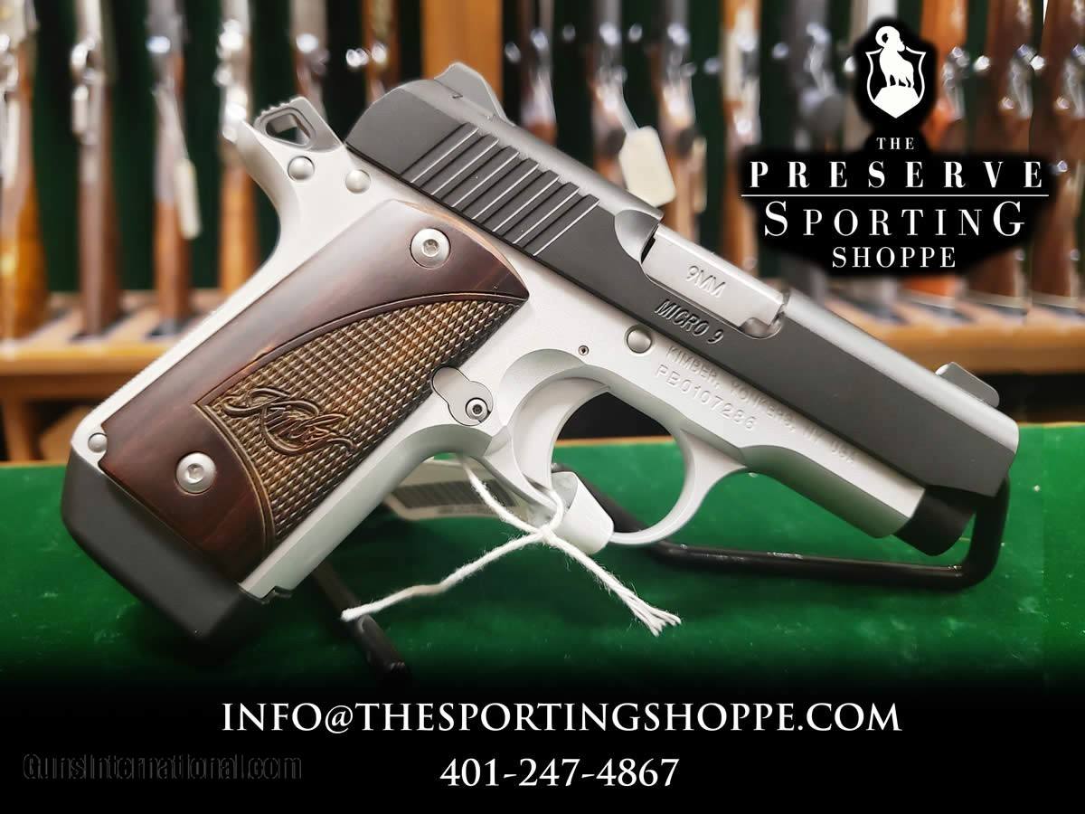 Description: The easily concealed Micro 9 features mild recoil, smooth trigger pull and the intuitive operation of a 1911. Specifications: Height (inches) 90° to barrel: 4.07 Weight (ounces) with empty magazine: 15.6 Length (inches): 6.1 Magazine capacity: 7 Recoil spring (pounds): 11.5 Full-length guide rod Frame: Material: Aluminum Width (inches): 1.06 Slide: Material: Steel Finish: Matte Black Barrel: Length (inches): 3.15 Material: Stainless Steel Twist rate (left hand): 16 Ramped Sights: White dot sights Radius (inches): 4.3 Grips: Rosewood Trigger: Solid Aluminum, match grade Factory setting (approx. lbs): 7.0 SOLD Manufacturer: Kimber Model: Micro 9 Serial Number: 669278330990 Caliber Info: 9mm Condition: Factory New |