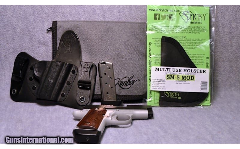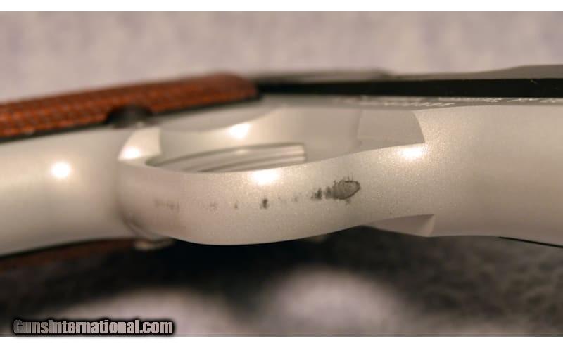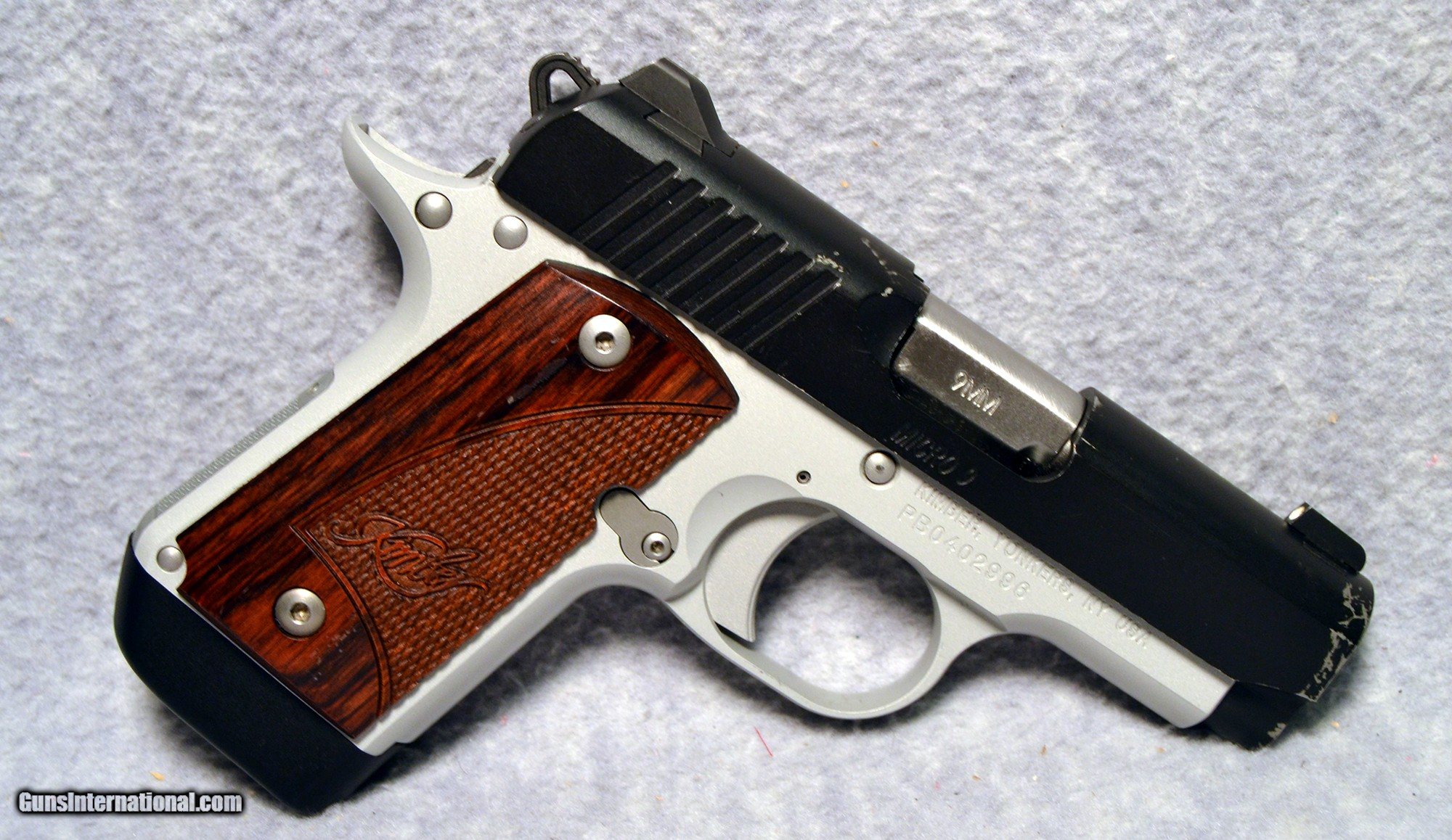 Description: This Kimber is in good overall condition. It has some finish missing on the trigger guard and some spots on the slide. The barrel and grips both look to be in very good condition. This pistol comes with 1 extra magazine and 2 holsters. Add this to your collection today. 9mm Luger SOLD Metal Condition: Good Bore Condition: Very Good Barrels: 3 Weight: 1.25 lbs Item Location: Cheektowaga, NY |