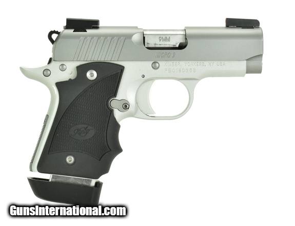 Description: Kimber Micro 9 9mm caliber pistol. Stainless pocket pistol with fiber optic sights and box. Excellent condition.