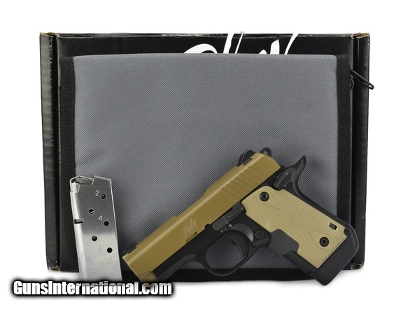 Kimber Micro 9 9mm caliber pistol. Desert Micro 9 with laser grips. Very good condition with box and magazine.