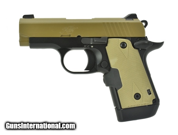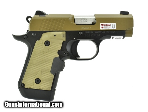 Kimber Micro 9 9mm caliber pistol. Desert Micro 9 with laser grips. Very good condition with box and magazine.