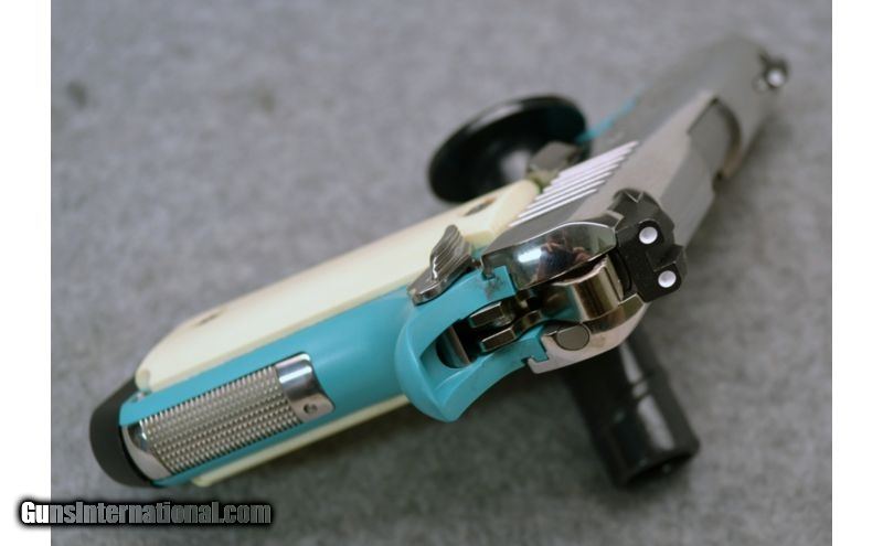 Description: This pistol is part of the Kimber "Bel Air" series, and is in excellent overall condition. This pistol comes with the factory soft case, paperwork, and 1 magazine. SOLD Caliber Info: 9mm Metal Condition: Excellent, with one scratch on the right side of the slide, between the muzzle and ejection port Bore Condition: Excellent Barrels: 3 Triggers: Single action Stock: Off white synthetic Sights: Front and rear low profile 3 dot sights Item Location: Christiana, DE |