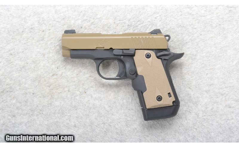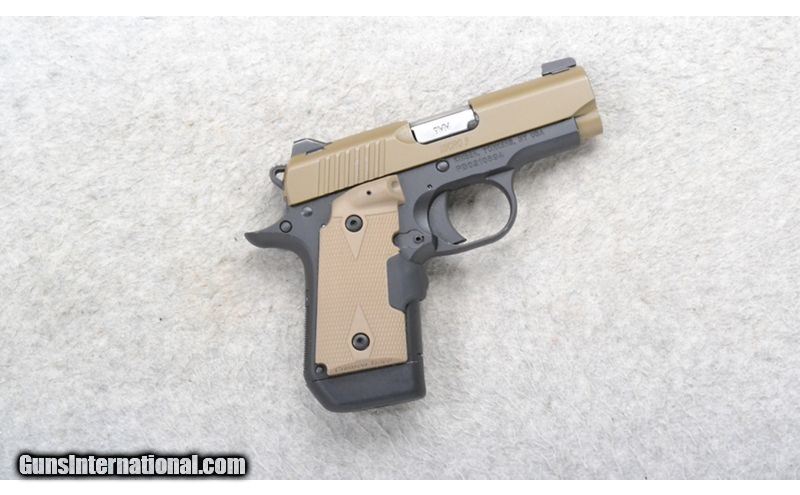 Description: This Kimber Model Micro 9 is a right hand semi-auto pistol in 9mm Cal. It has a 3 inch barrel with a rear serrated slide. A blade front sight and notch rear sight with 3 white sight dots. It has a Crimson Trace red laser sight. The grip panels are a diamond checkered tan polymer. It has a ringed serrated hammer. 9mm Parabellum SOLD Chambers: 6 shot magazine. Metal Condition: Excellent. Bore Condition: Excellent. Barrels: 3 inch barrel with a rear serrated slide. Weight: 20 oz. Sights: Blade front. Notch rear. Crimson Trace red laser. Item Location: Richfield, WI |
