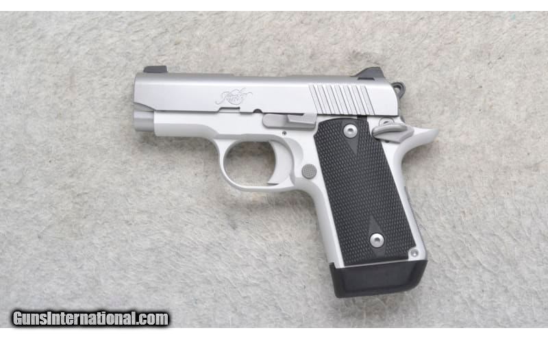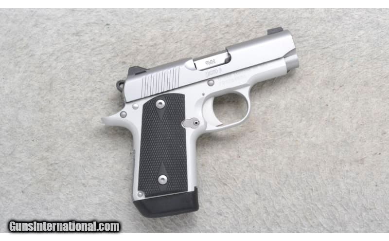 Description: This Kimber Model Micro 9 is a right hand semi-auto pistol in 9mm Cal. It has a 3 inch barrel with a rear serrated stainless steel slide. A blade front sight and notch rear sight with white sight dots. The grip panels are a diamond checkered black rubber. 9mm Parabellum SOLD Chambers: 6 round magazine. Metal Condition: Excellent. Bore Condition: Excellent. Barrels: 3 inch barrel with a rear serrated slide. Weight: 16 oz. Sights: Blade front. Notch rear. White sight dots. Item Location: Richfield, WI |