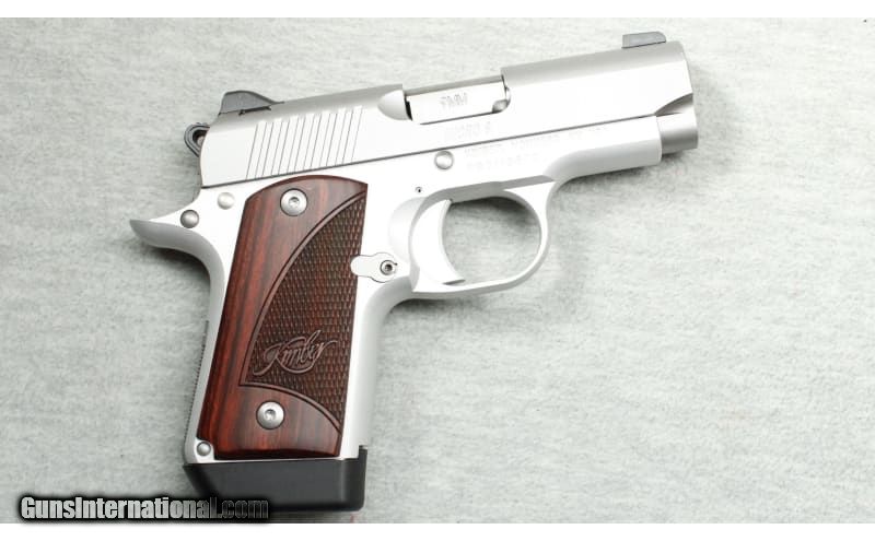 Description: Excellent condition, light wear and handling marks, comes with one mag. Kimber semi auto sub compact 9mm pistol, 3" barrel, two tone finish, single action trigger with manual safety lever, 3 white dot iron sights and Kimber factory checkered wood grips. 9mm Luger SOLD Chambers: Semi auto Metal Condition: Excellent Bore Condition: Bright Barrels: 3 Triggers: Single action Butt Pad: Wood grips Sights: 3 Dot sights Item Location: La Vista, NE |