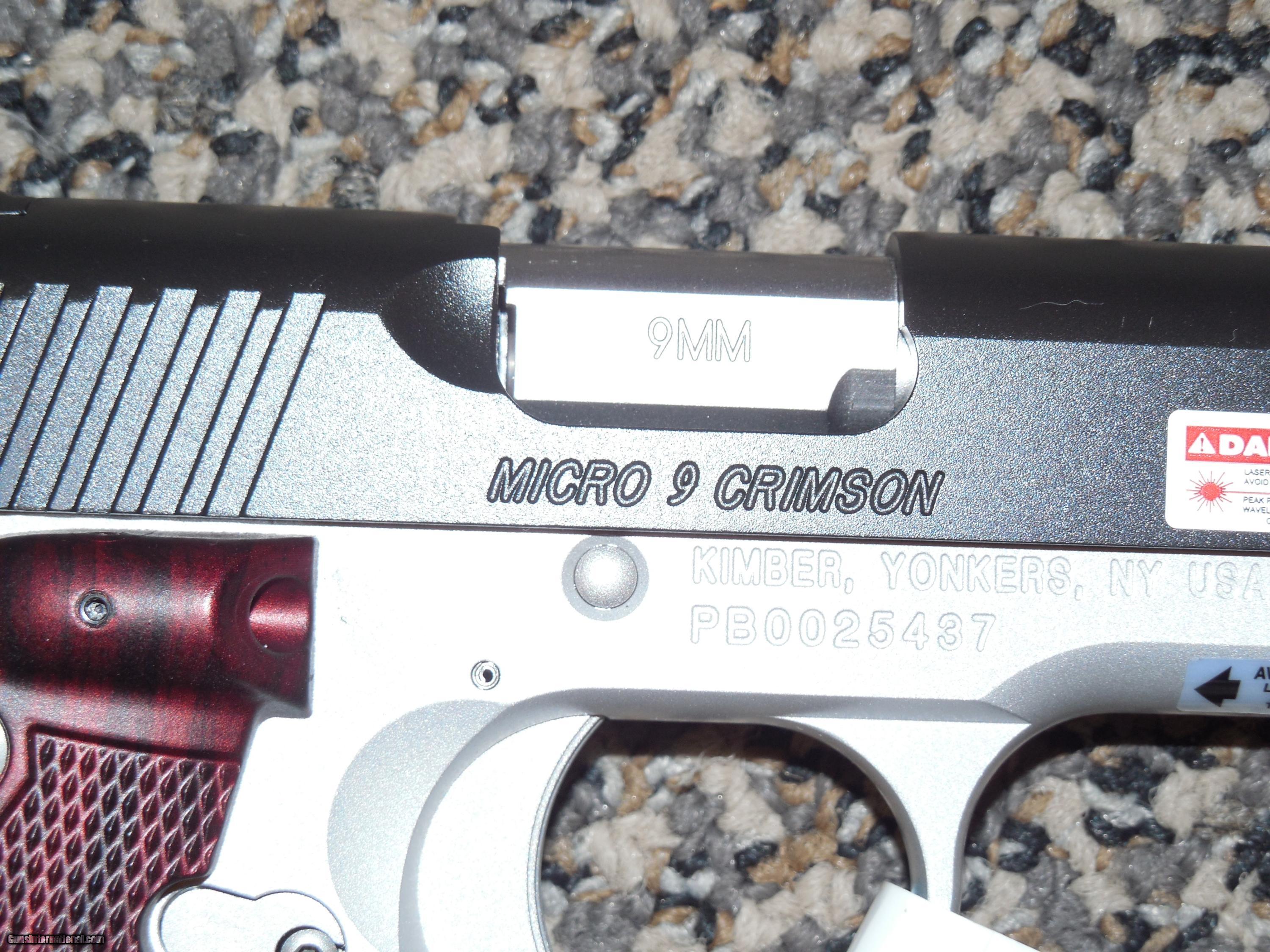 Description: Here's a new KIMBER MICRO 9 CRIMSON CARRY 9 MM PISTOL WITH LASER. It's been hard to get these, and it's being offered for ONLY $799.95 plus $25 for shipping, handling, and ijsurace for CASH/CERTIFIED FUNDS/MO's. Use a credit card and add $25 to the total. SOLD |