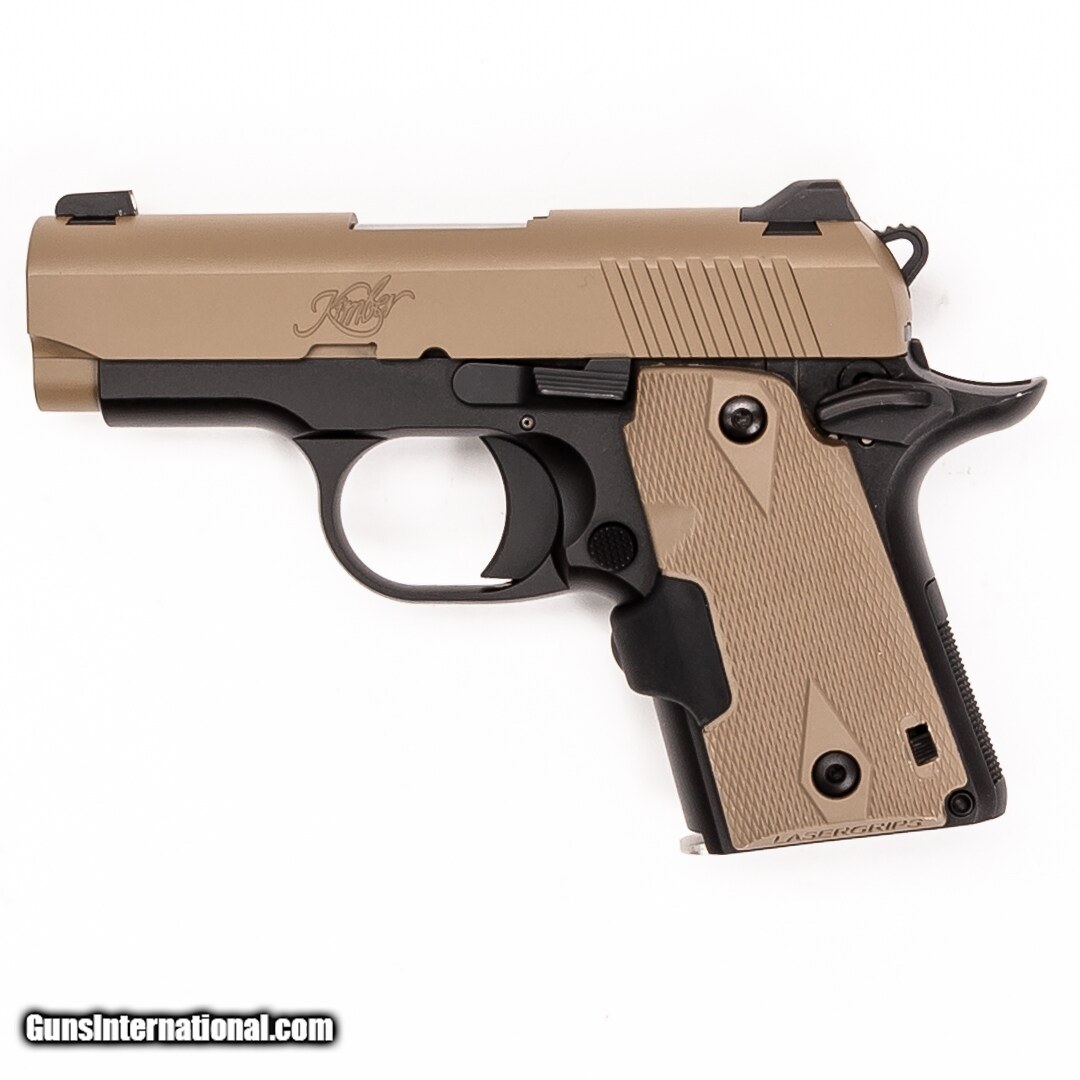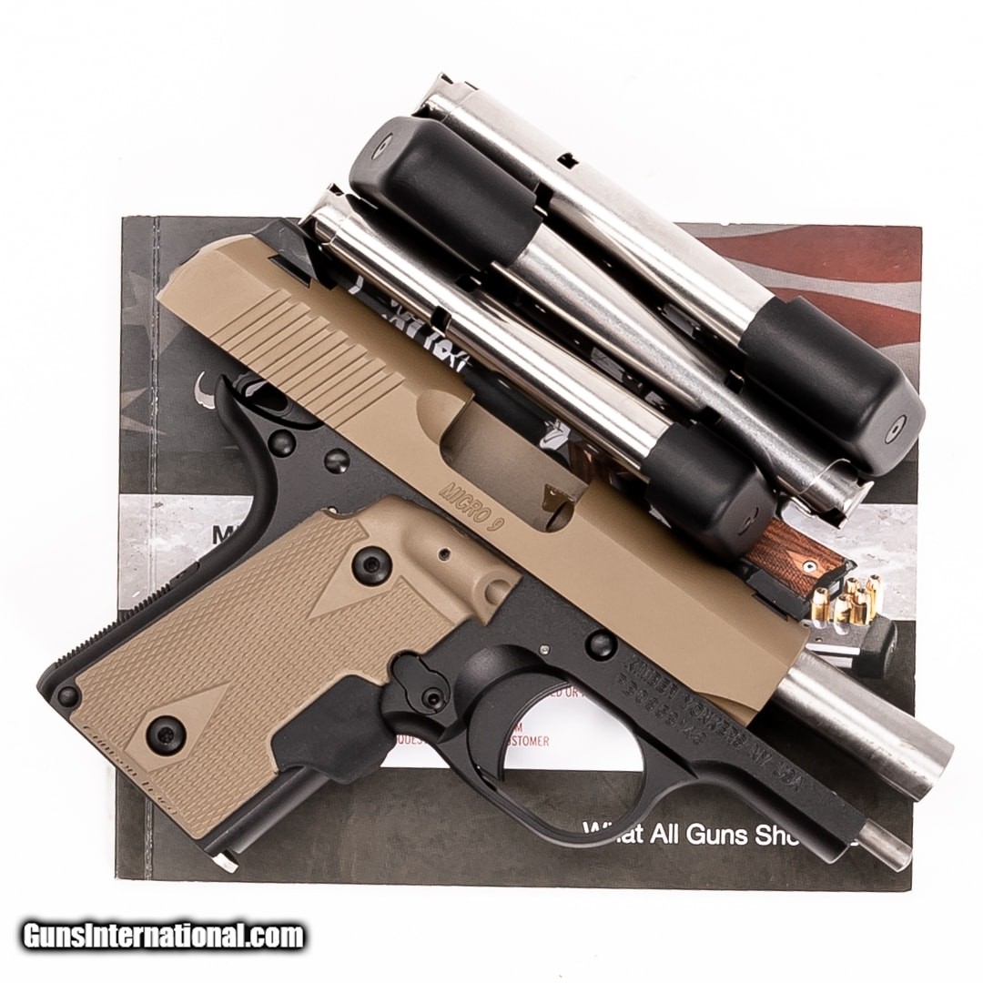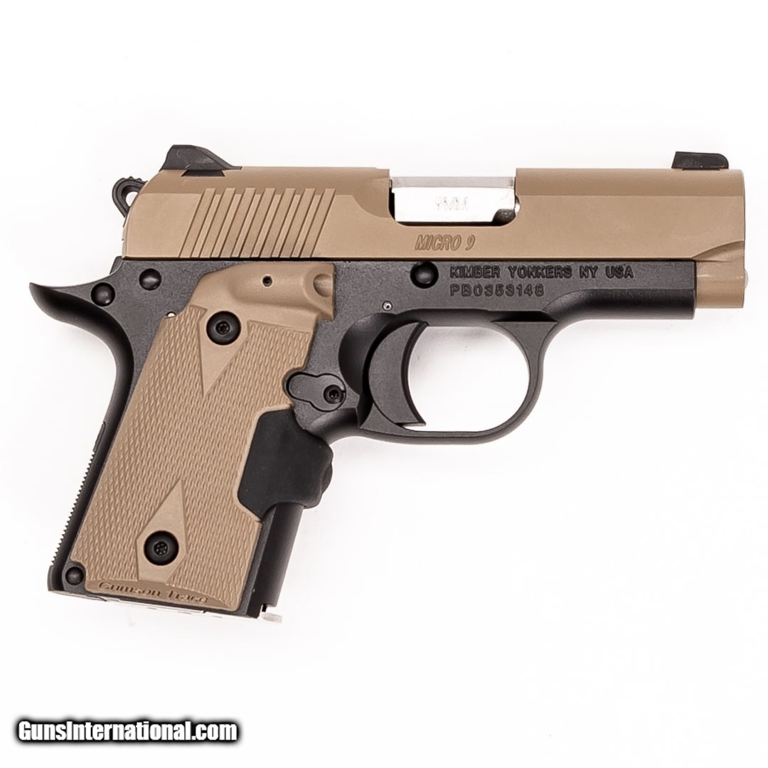 Description: Guns Listing ID: 335851 This Kimber Micro 9 is a durable 9mm handgun built on the 1911 platform. Known for their superior build quality and among the finest production pistols on the market, you can"t go wrong with a Kimber. This single-action Desert Tan Micro 9 is equipped with Lasergrips and is in excellent condition! Purchase includes a soft case, one 6-round magazine, one 7-round magazine, and two 8-round magazines. SOLD Manufacturer: KIMBER Model: MICRO 9 DESERT TAN (LG) Caliber Info: 9MM LUGER Condition: Used - Certified Barrels: 32 BARREL Finish: FDE/BLACK |