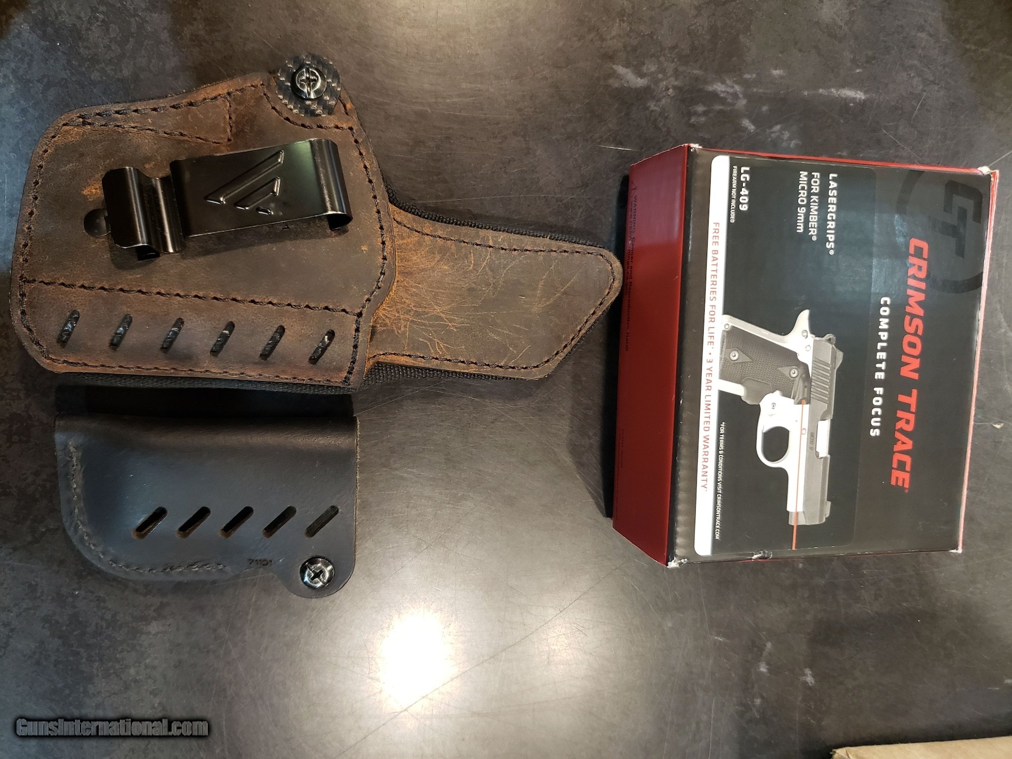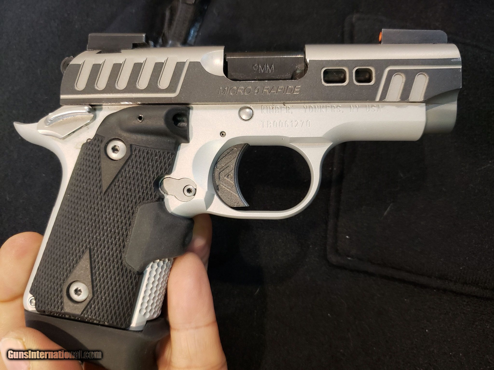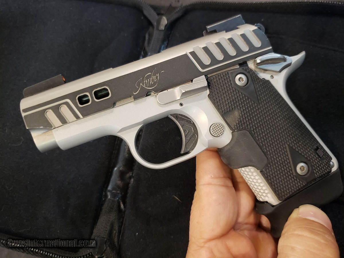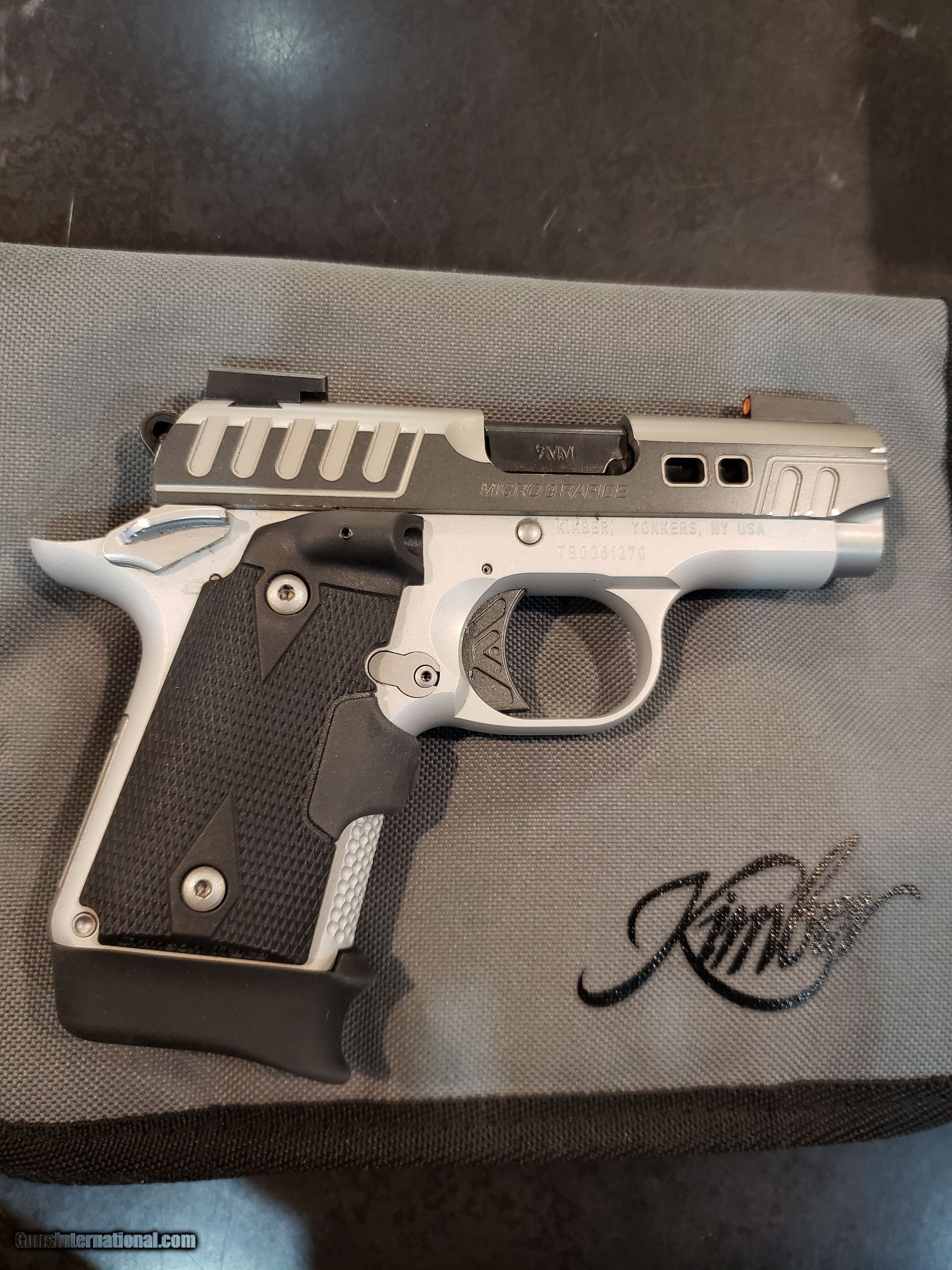 Description: Guns Listing ID: 491611 EXCELLENT CONDITION. COMES WITH EVERYTHING PICTURED, NOTHING MORE, NOTHING LESS. The MICRO 9 RAPIDE features performance enhancing features such as stepped cocking serrations, slide lightening cuts for faster lock time, Black KimPro finish and TiN coated barrel for extreme durability, flush fitting magwell, along with Stiplex front strap pattern, for positive grip. SPECIFICATIONS Height (inches) 4.07 Weight (ounces) with empty magazine: 15.6 Length (inches): 6.1 Width (inches): 1.08 Magazine capacity: 7 Recoil spring (pounds): 11.5 FRAME Material: Aluminum Finish: Kimpro II Silver SLIDE Material: Stainless steel Finish: Silver / Grey KimPro II BARREL Length (inches): 3.15 Material: Stainless steel, match grade Twist rate (left hand): 16 SIGHTS Tru-Glo TFX Pro Day Night Sights GRIPS Grey G10 grips TRIGGER Premium aluminum Factory setting (approximate pounds): 7.0 SOLD Manufacturer: KIMBER Model: Micro 9 Rapide Caliber Info: 9 MM Condition: Used - Non-Certified Barrels: 3.15" barrel Finish: BLACK AND STAINLESS |