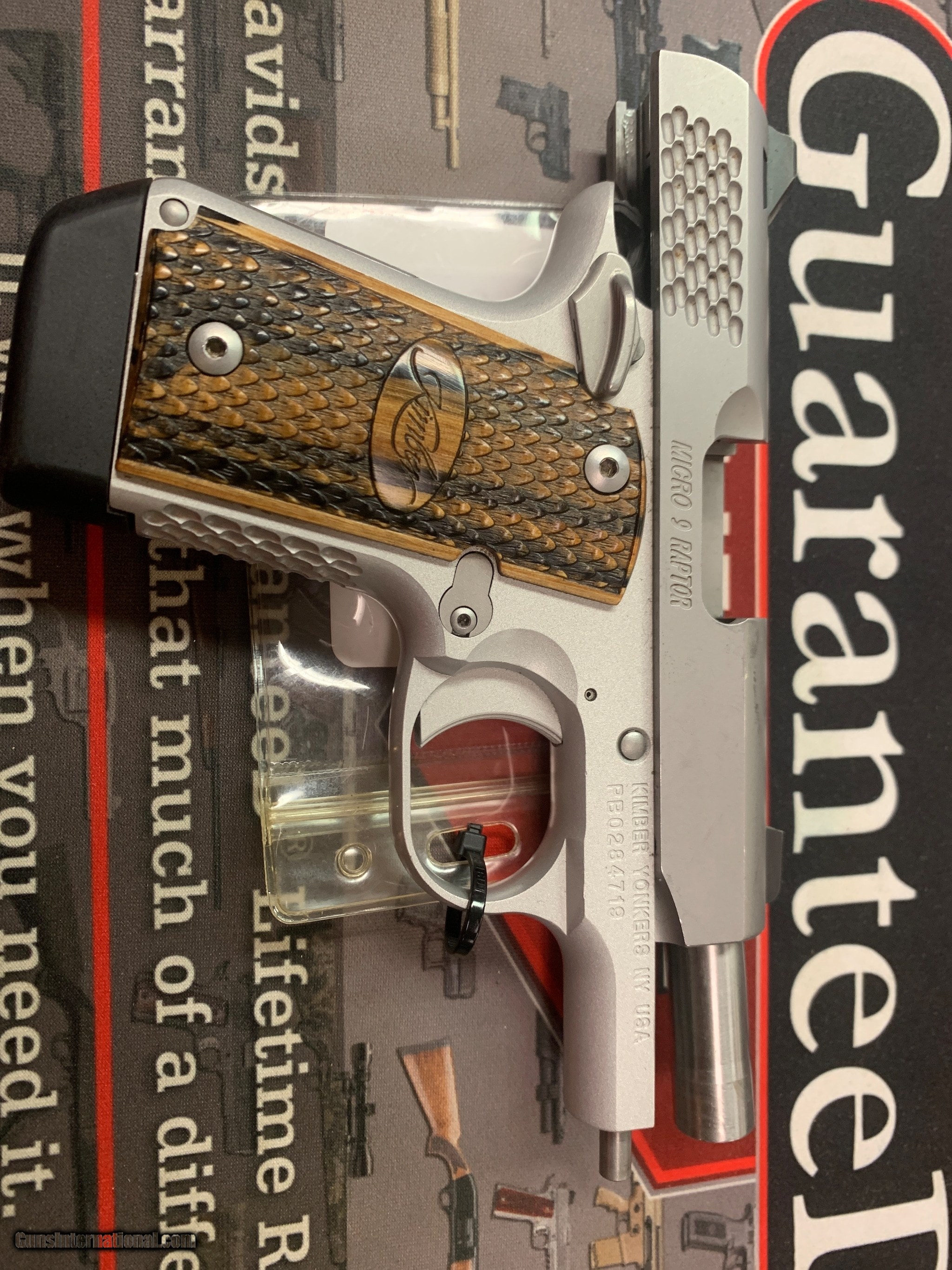 Description: Guns Listing ID: 377366 Kimber micro 9 raptor with 1 magazine only. SOLD Manufacturer: KIMBER Model: MICRO 9 RAPTOR Caliber Info: 9MM Condition: Used - Non-Certified Barrels: 2 BARREL Finish: STAINLESS |