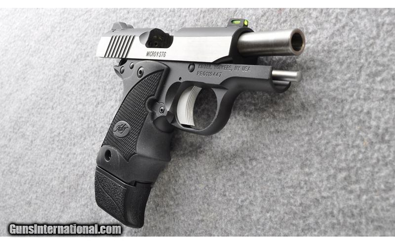 Description: The Kimber Micro 9 STG features an aluminum frame and stainless slide with dovetailed sights. A thumb safety and slide release are designed from the 1911. 9mm Luger SOLD Chambers: 9mm Luger in an eight round detachable magazine Metal Condition: Appears near new Bore Condition: Appears near new Barrels: 3" Match Grade Triggers: Single Action Weight: 18 oz. Sights: "Green fiber optic front, Low profile dot rear Item Location: Grand Junction, CO |
