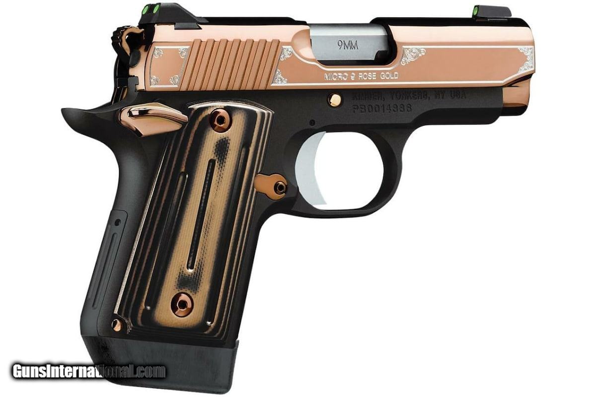 Description: Guns Listing ID: 467645 The Kimber Micro 9 Rose Gold Special Edition pistol features a striking Rose Gold PVD coating on the slide, with matching Rose Gold controls. The Micro 9 has a smooth trigger pull, mild recoil and the intuitive operation of a 1911, along with a host of performance-enhancing features. Ideal for shooters with small hands as well as those who insist on mild recoil combined with enough power for concealed carry or home protection, Micro 9 pistols are the right choice for many applications. Best of all, they offer unequaled Kimber quality, dependability and performance. SOLD Manufacturer: KIMBER Model: Micro 9 Caliber Info: 9 MM Condition: new Barrels: 2.75" barrel Finish: ROSE GOLD |