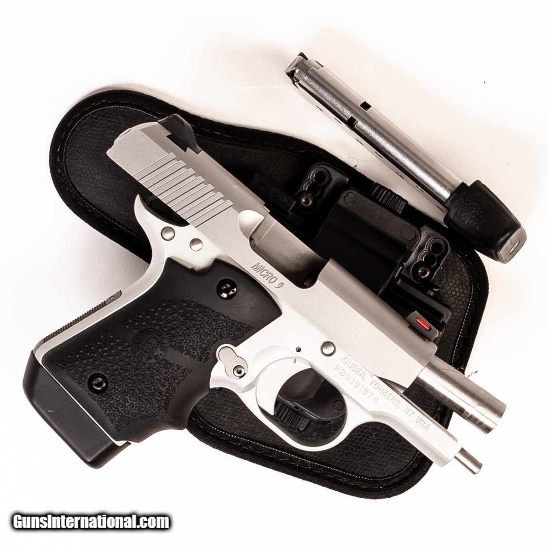 Description: Guns Listing ID: 457986 This listing is for a Kimber Micro 9 semi-automatic handgun. It is based off the 1911 but scaled down to a nice daily carry size. 1-8 round magazine, 1-7 round magazine, the original box, manual, soft case, Mcarbo trigger kit, black Hogue grip, and an Alien Gear IWB holster are included/installed. Kimber‚‚s are all proudly made in the United States and are known for their premium quality SOLD Manufacturer: KIMBER Model: MICRO 9 Caliber Info: 9MM LUGER Condition: Used - Certified Barrels: 32 BARREL Finish: STAINLESS |