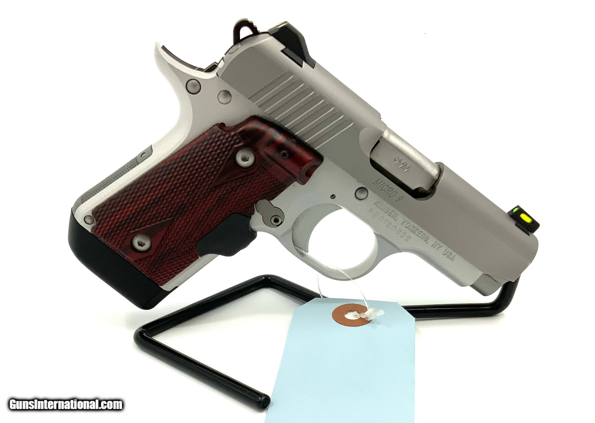 Description: Guns Listing ID: 479231 Kimber Micro 9 in Great shape! Perfect for conceal carry! -Equipped with Crimson Trace Laser grips (Red) -3.15” barrel - 7-pound factory set trigger -7-round capacity -Metal: Satin silver finish -Action: Double -Weight: 15.6 ounces -Caliber: 9mm Minimal amount of wear SOLD Manufacturer: KIMBER Model: Micro 9 Caliber Info: 9MM Condition: Used - Non-Certified Barrels: 3.15 BARREL Finish: STAINLESS/WOOD GRIPS |