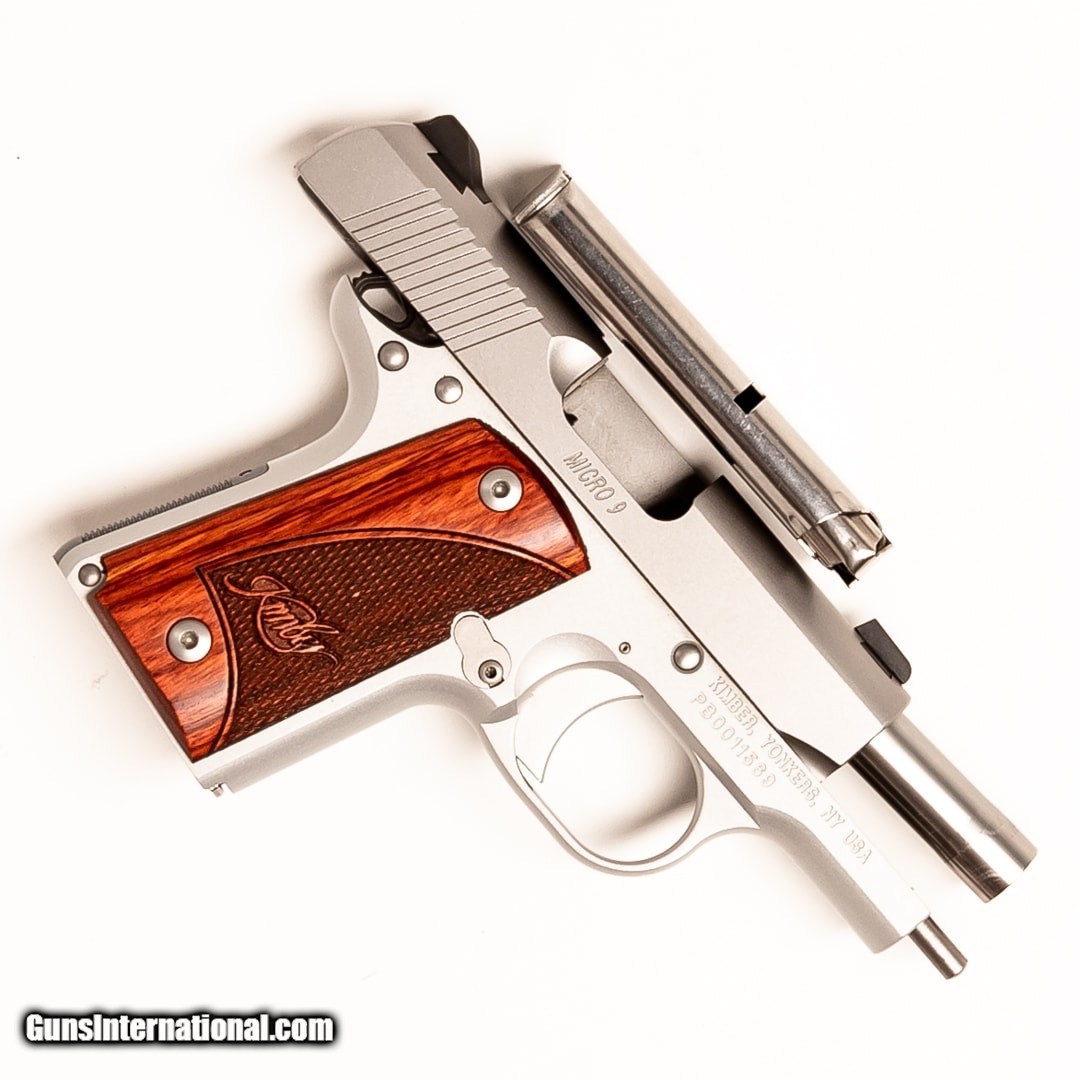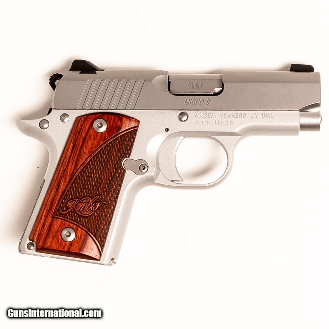 Description: Guns Listing ID: 545166 This listing is for a Kimber Micro 9 semi-automatic handgun with a stainless-steel exterior and wood Kimber grips. It is based off the 1911 but scaled down to an easy daily carry size. 2-6 round magazines, the original box, carry bag, and a manual are included. SOLD Manufacturer: KIMBER Model: MICRO 9 Caliber Info: 9MM LUGER (9X19 PARA) Condition: Used - Certified Barrels: 32 BARREL Finish: STAINLESS |