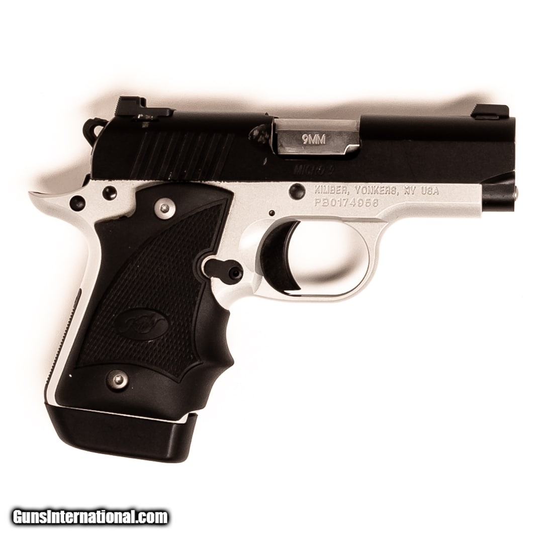 Description: Guns Listing ID: 650682 The Kimber Micro 9 is a durable 9mm handgun built on the 1911 platform. Known for their superior build quality and among the finest production pistols on the market, you can‚‚t go wrong with a Kimber. This Micro 9 is equipped with TruGlo sights and includes three 7-round magazines, two with pinky extensions. Get the best bang for your buck when you get a Certified Used Firearm . When you see the Certified Used stamp on any of our firearms, you can be confident that you’re getting exactly what you want – a gun only in very good to excellent condition and held to the highest quality standard. All Certified Used Guns come with a ‘no questions asked’ return policy . PLUS, ALL CERTIFIED USED GUNS SHIP FREE SOLD Manufacturer: KIMBER Model: MICRO 9 Caliber Info: 9MM LUGER (9X19 PARA) Condition: Used - Certified Barrels: 3.2 barrel Finish: TWO-TONE |