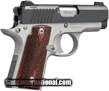 Description: Guns Listing ID: 344394 Kimber Micro Carry Rosewood Two-Tone (NS) Pistol, .380 ACP, 2-3/4 in Barrel, Brush Polish Frame/Matte Black Slide, Night Sights SOLD Manufacturer: KIMBER Model: Micro Carry Caliber Info: .380 ACP Condition: new Barrels: 2.75" barrel Finish: SATIN WITH ROSEWOOD GRIPS |