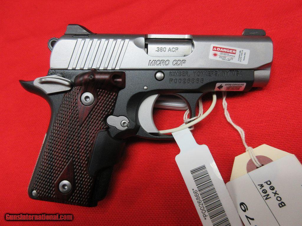 Description: Kimber Micro CDP LG 380acp 2.75" w/ Crimson Trace Grips (NEW)-- The Micro Carry CDP LG: stainless steel barrel and slide, matte black alloy frame, full carry melt treat rounding all edges of the pistol for a more snag free carry and draw from concealment, Crimson Trace Lasergrips, ambi safety, checkered mainspring housing and front strap, night sights. SOLD |