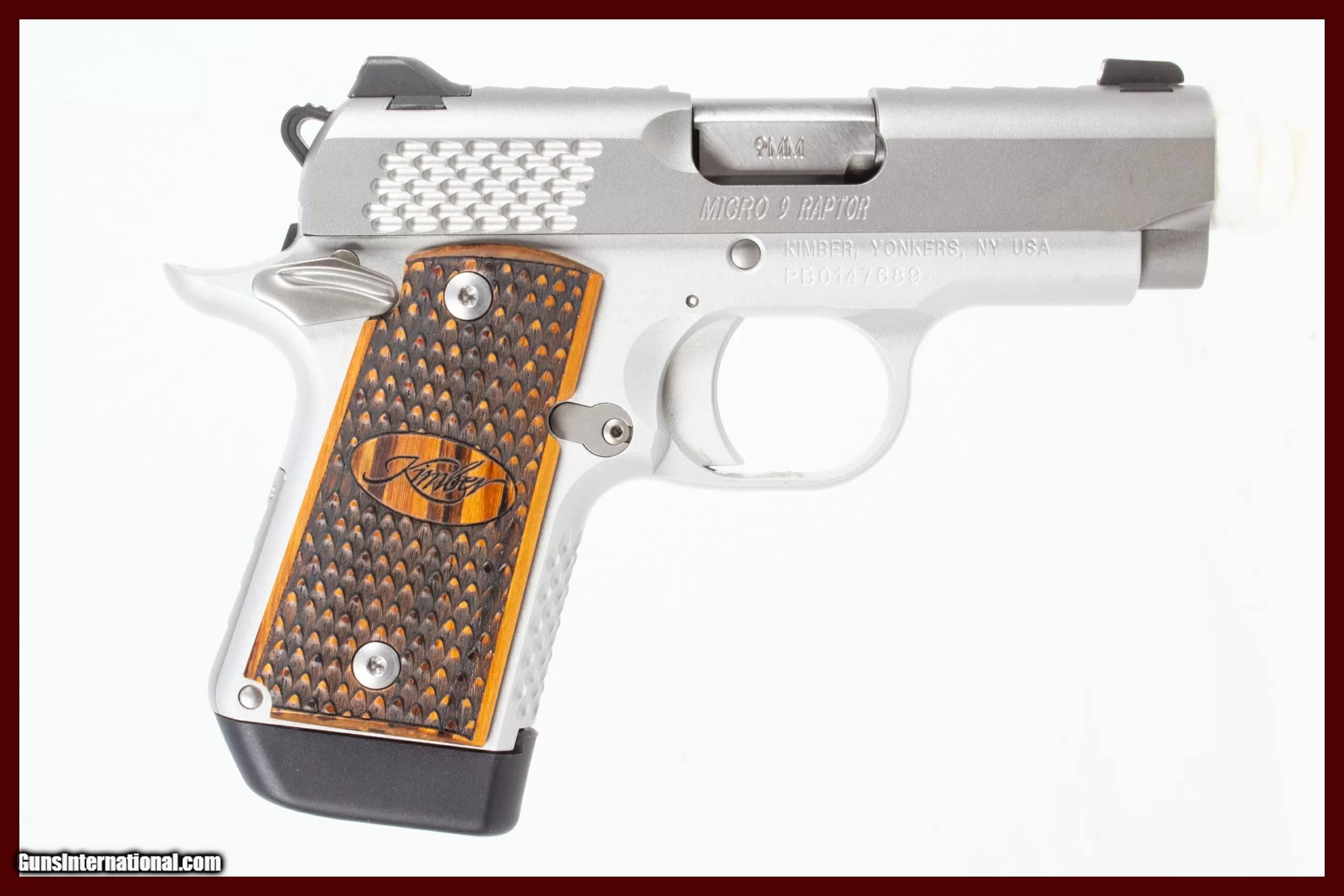 Description: Kimber Micro 9 chambered for 9mm Luger with three-inch barrel, stainless finish, three-dot sights, scale-checkered walnut grips, chain-link steel stippling, and ambi manual thumb safety. Includes box and two magazines. The NRA grading condition for this USED firearm is Very Good. Dury's Lifetime Warranty: All firearms purchased from Dury’s Gun Shop, NEW or USED, are covered by a lifetime warranty. We will repair or replace, at our discretion, any firearm purchased from Dury’s Gun Shop, Inc. for as long as it is owned by the purchaser. This warranty is not transferable. WE BUY GUNS! NO COLLECTION TOO BIG OR SMALL FOR OUR GUNS INTERNATIONAL CUSTOMERS ALL OF OUR FIREARMS CAN BE PURCHASED DIRECTLY FROM OUR DURY'S GUNS SITE! SOLD Manufacturer: Kimber Model: MICRO 9 Raptor Caliber Info: 9 mm Barrels: 3inches |